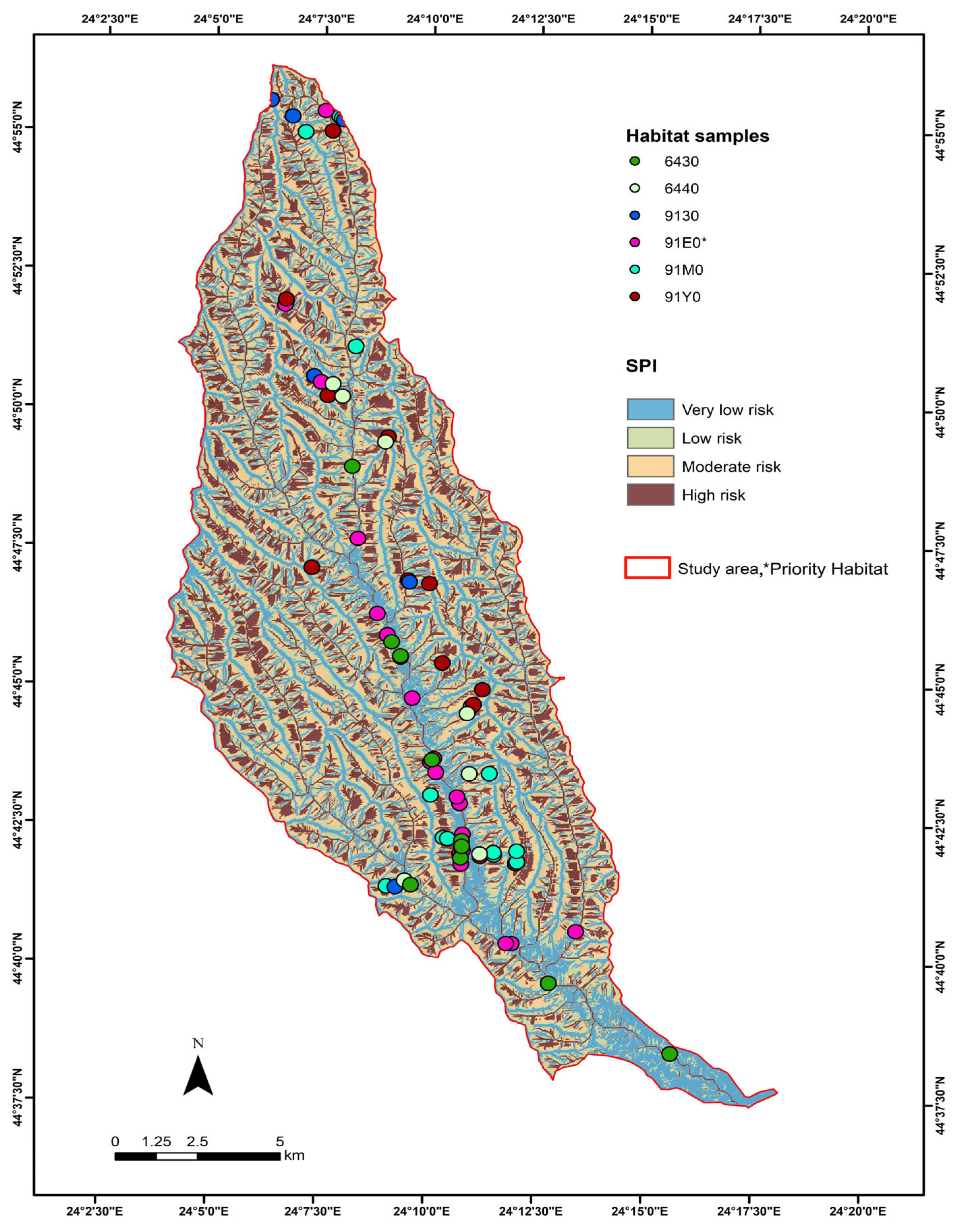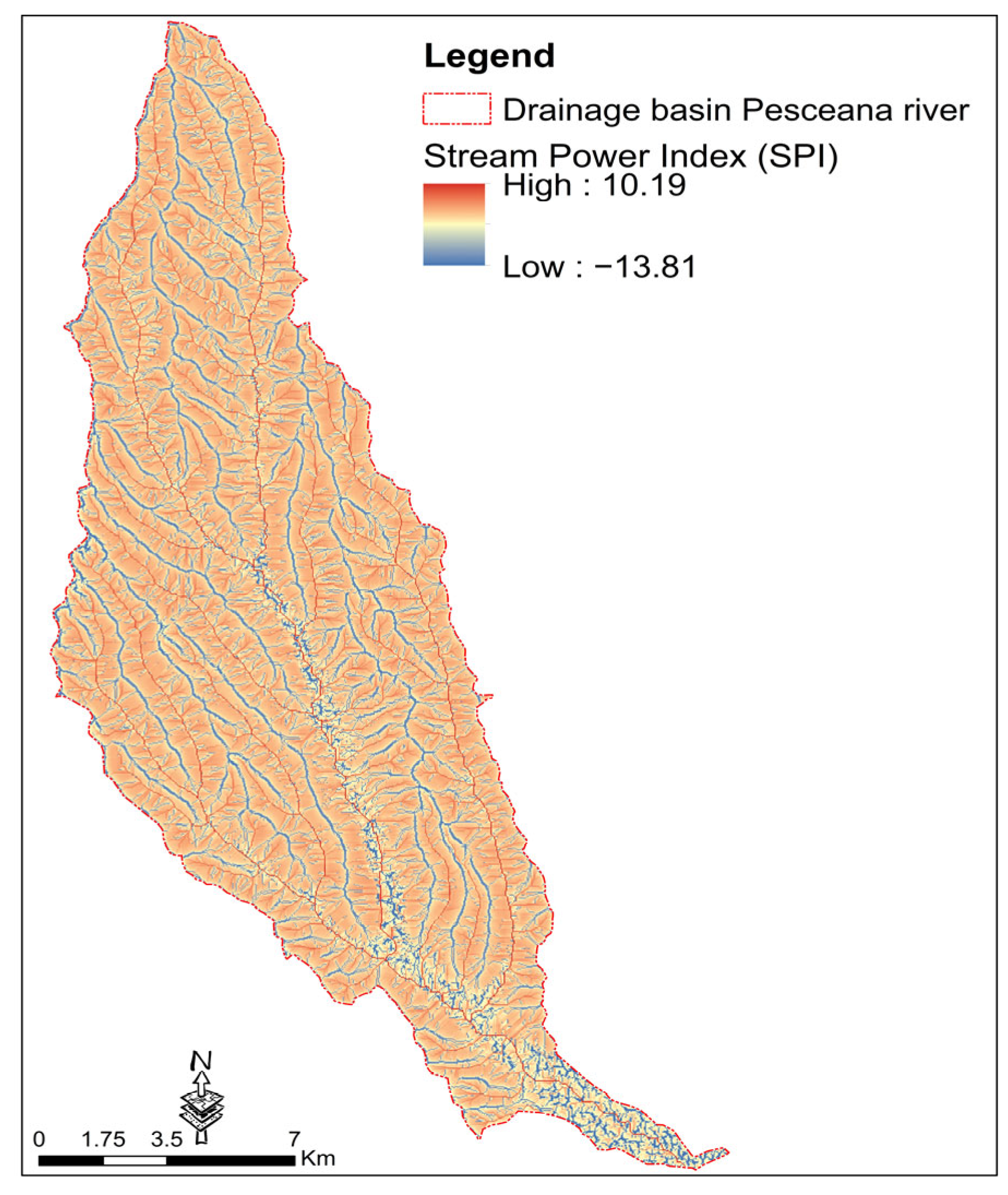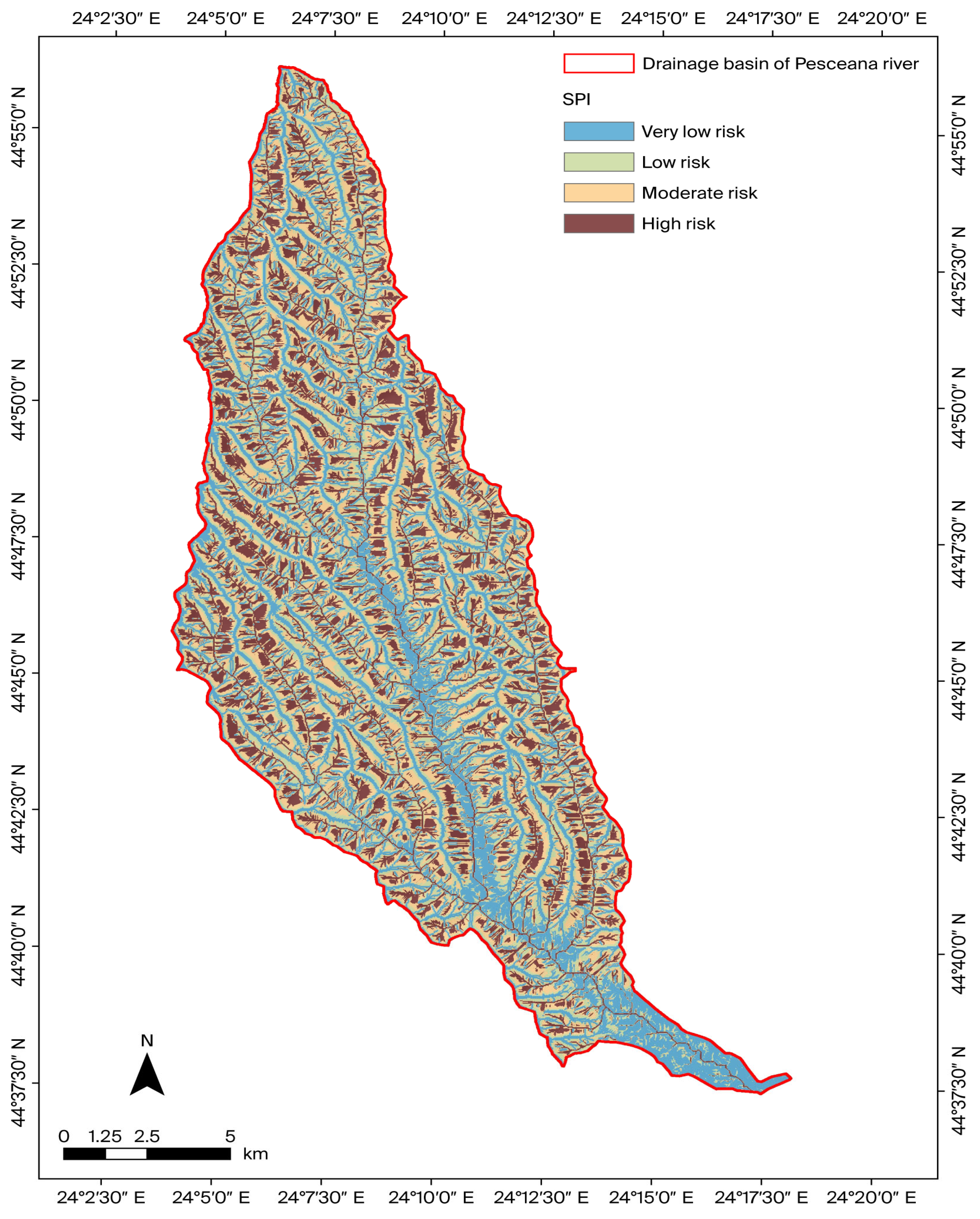 - Sample overlaps with high-risk areas: Samples located in high-SPI classes correspond to locations with high combinations of slope and specific area. This correlation suggests that the SPI may be a useful predictor for identifying areas with high erosion potential.