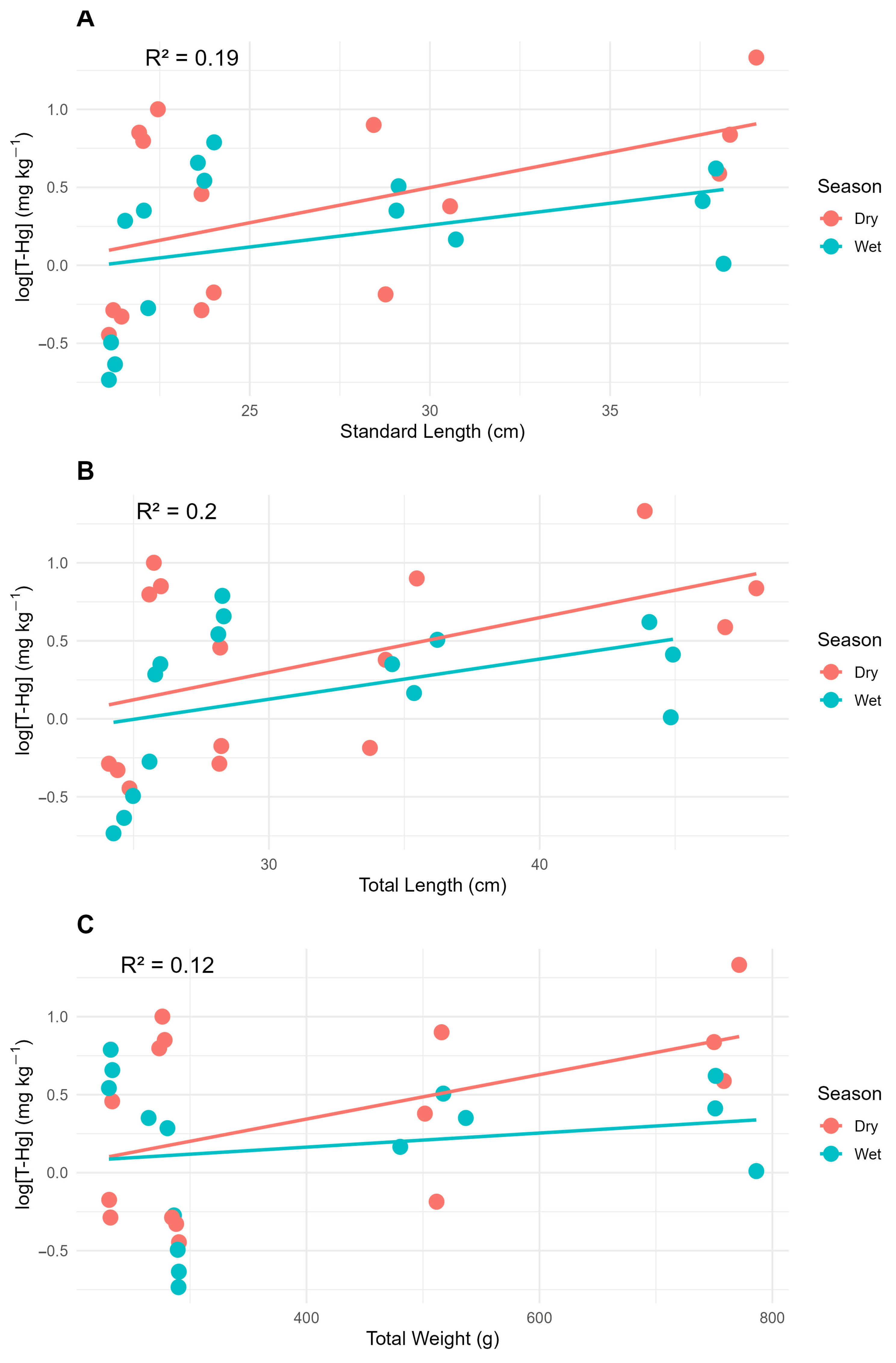 | Hoplias malabaricus | Wet | 6 | 1.58 ± 0.82 (0.76–2.40) |