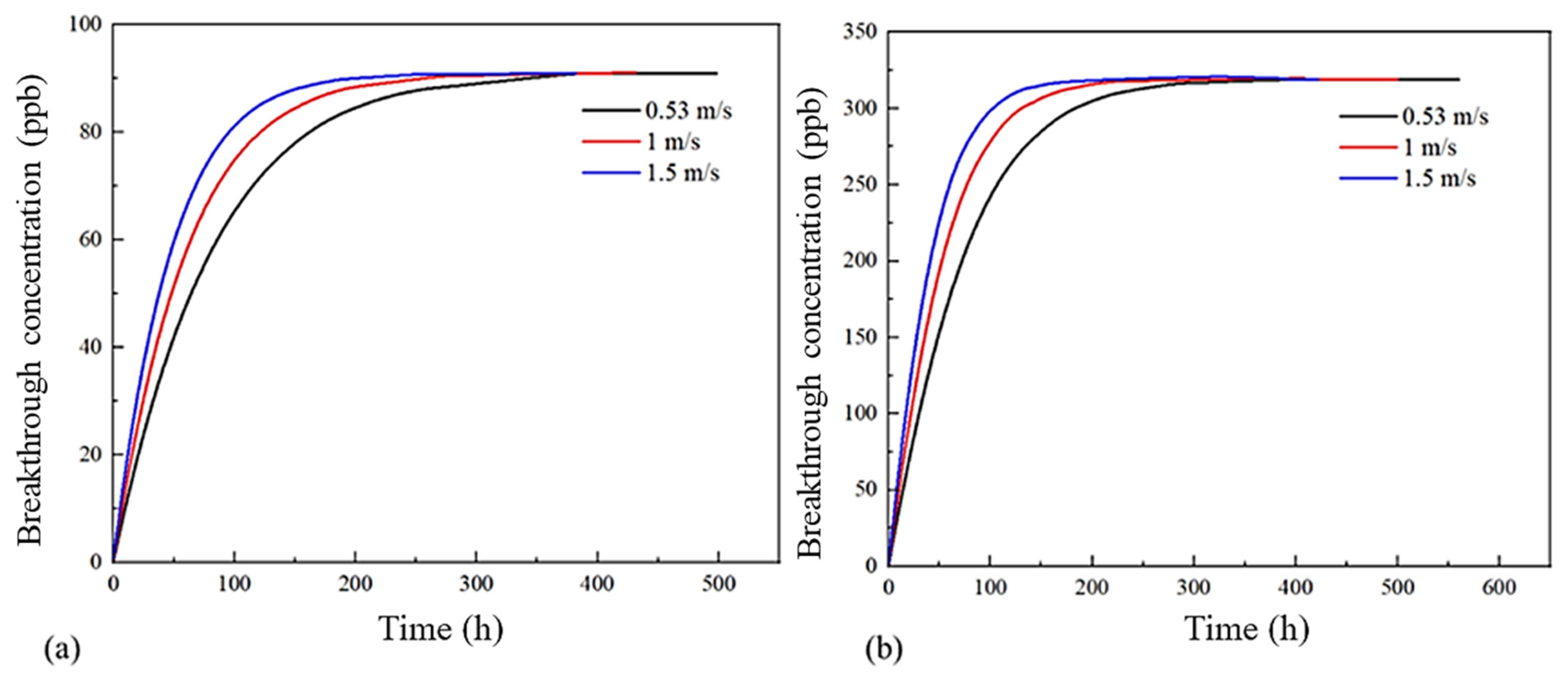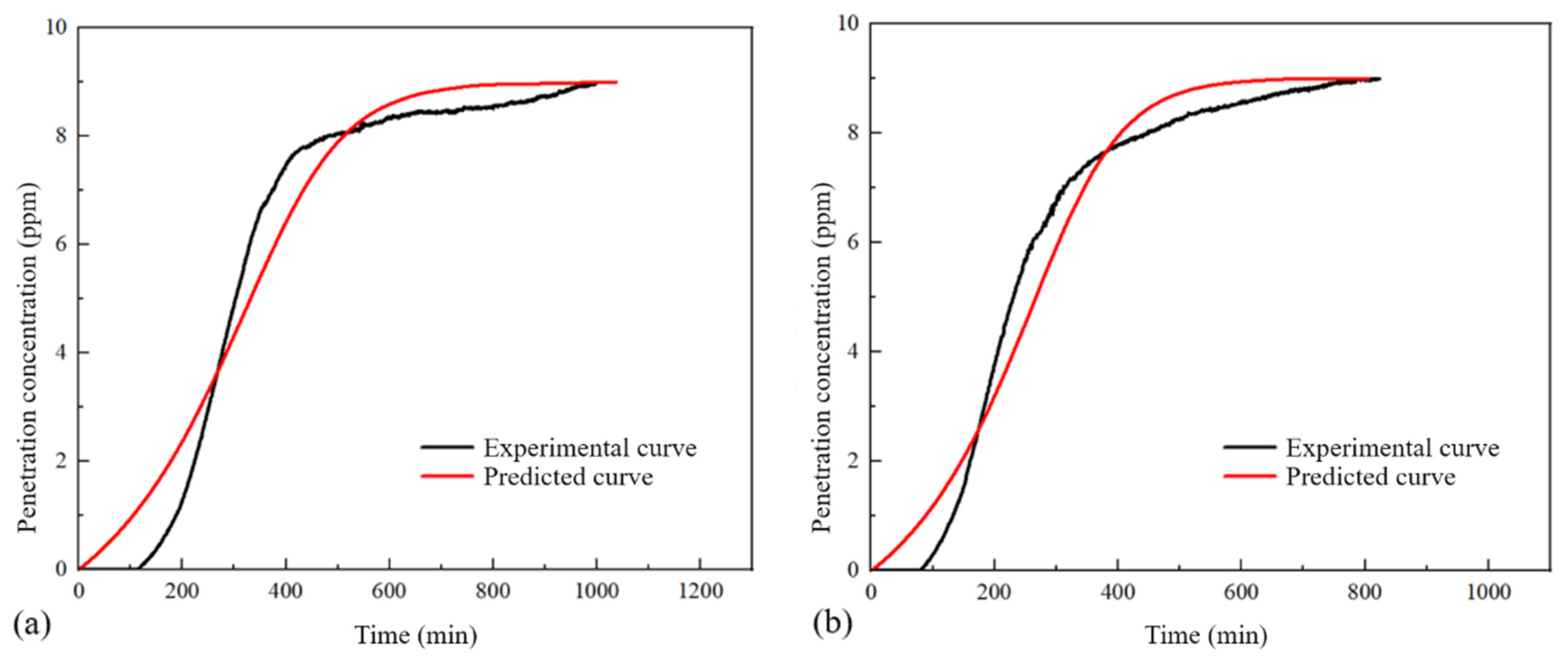 - A parameterized model of saturated adsorption capacity, developed based on molecular simulations and implemented in COMSOL, accurately predicted breakthrough behavior under various operating conditions with an error margin of less than 7.2%. This model provides a robust tool for estimating the service life of activated carbon in practical applications.