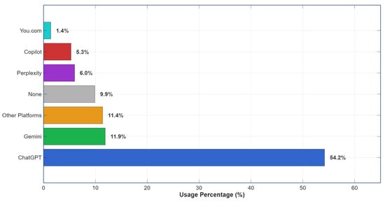 The frequency analysis indicated that the most widely used GenAI tool among students was ChatGPT (54.2%), establishing itself as the main source of academic support. Its use was primarily focused on report writing, idea generation, understanding of technical concepts, and solving practical exercises. The ease of access, rapid response time, and adaptability across different fields of knowledge explain its broad adoption within the student community, as shown in Figure 5.