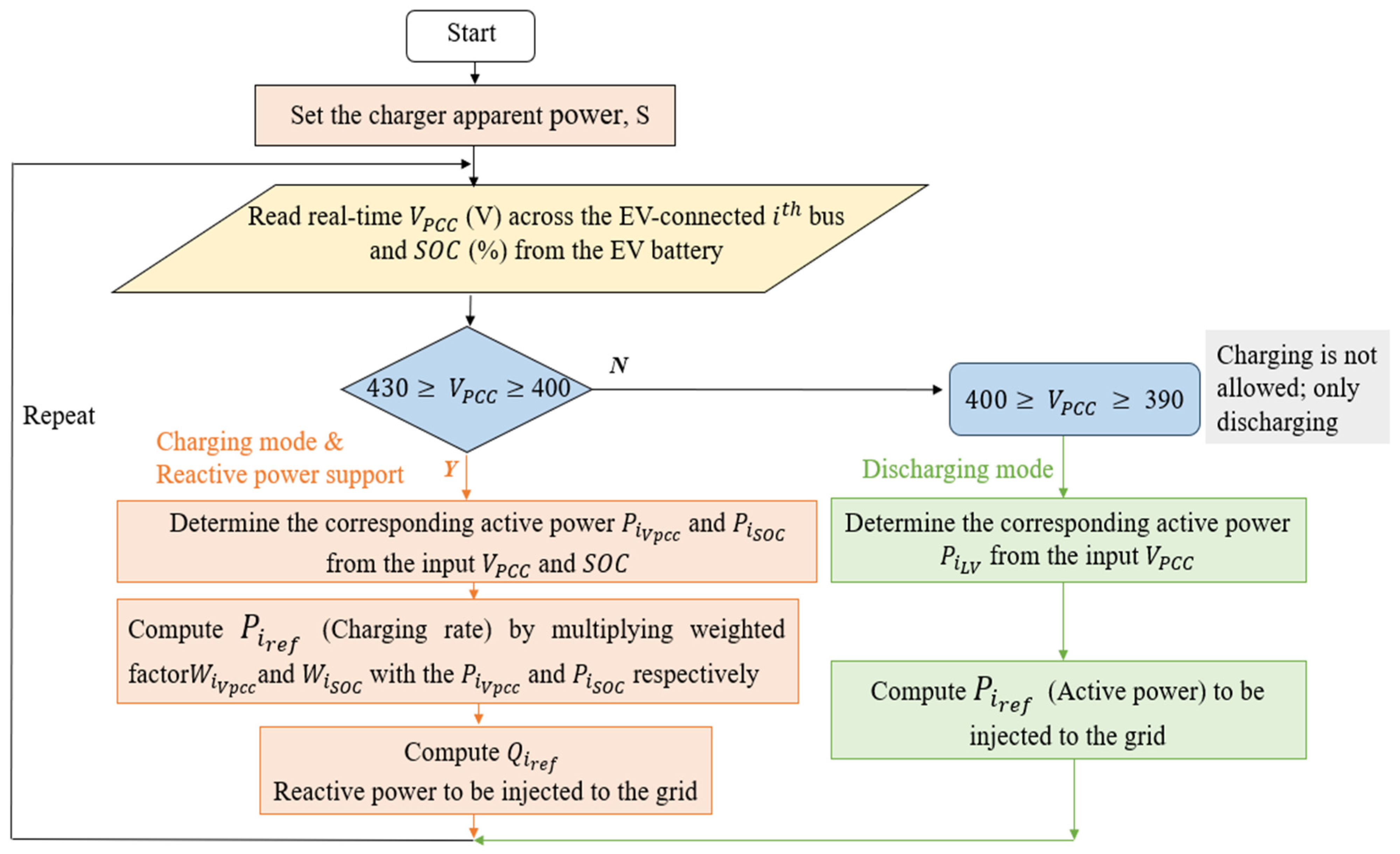| 1. | Measure Grid voltage, PV generation, EV Load and SOC of EV | |||