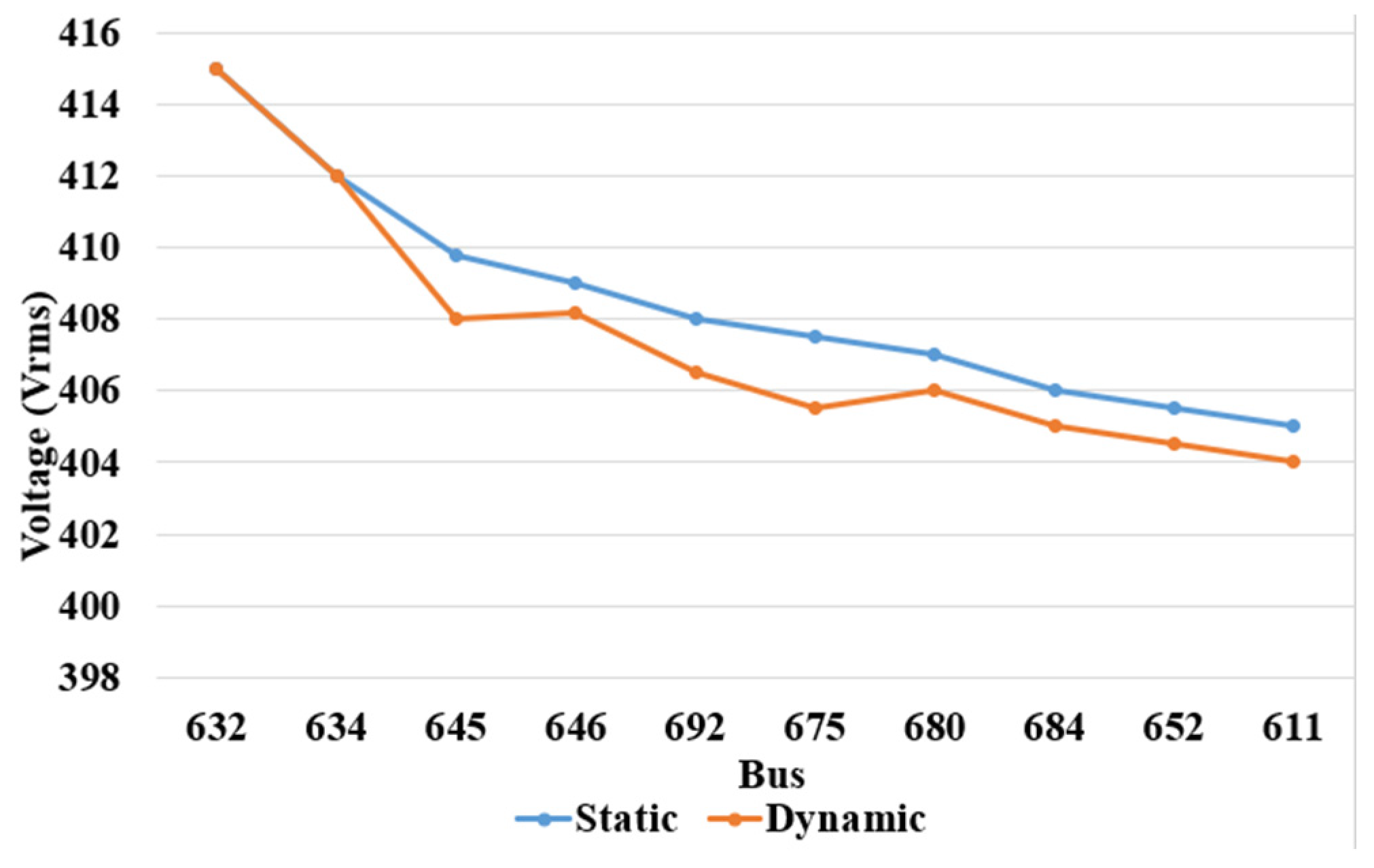 | [16] | This study analyzes and predicts potential congestion risks across selected circuits within Orion’s network as EV charging demand continues to grow. | The results indicate that during peak load conditions, voltage levels across most sub-networks are projected to drop below 0.94 p.u., signaling potential undervoltage issues and reduced voltage stability as EV charging demand intensifies. | Considering renewable sources such as solar PV or wind power would provide deeper insights into grid flexibility, energy balancing, and the potential for reducing peak load impacts through coordinated DER–EV operation. |