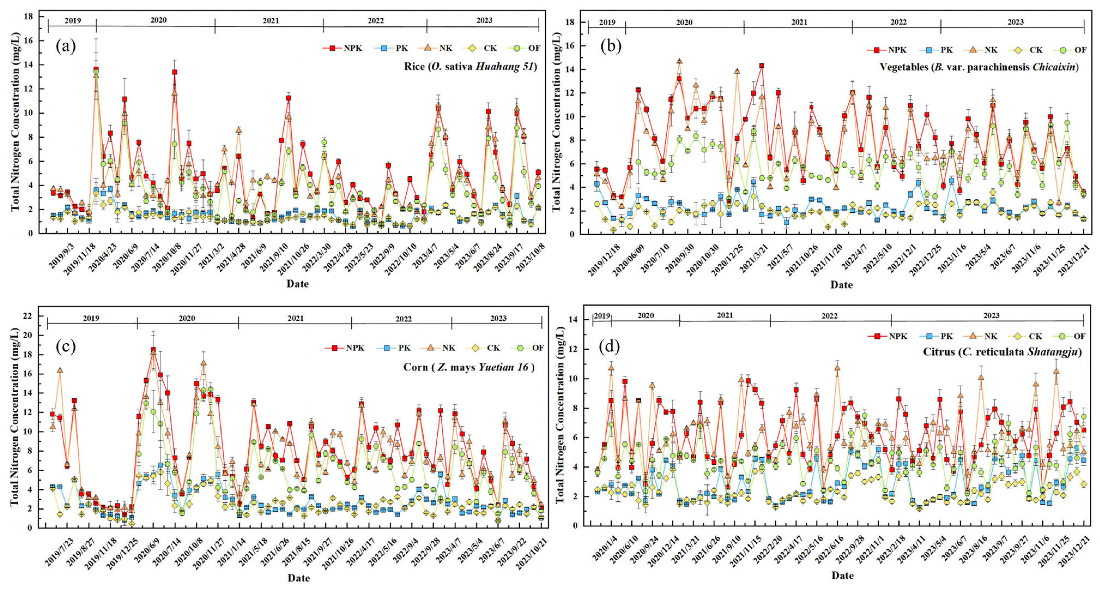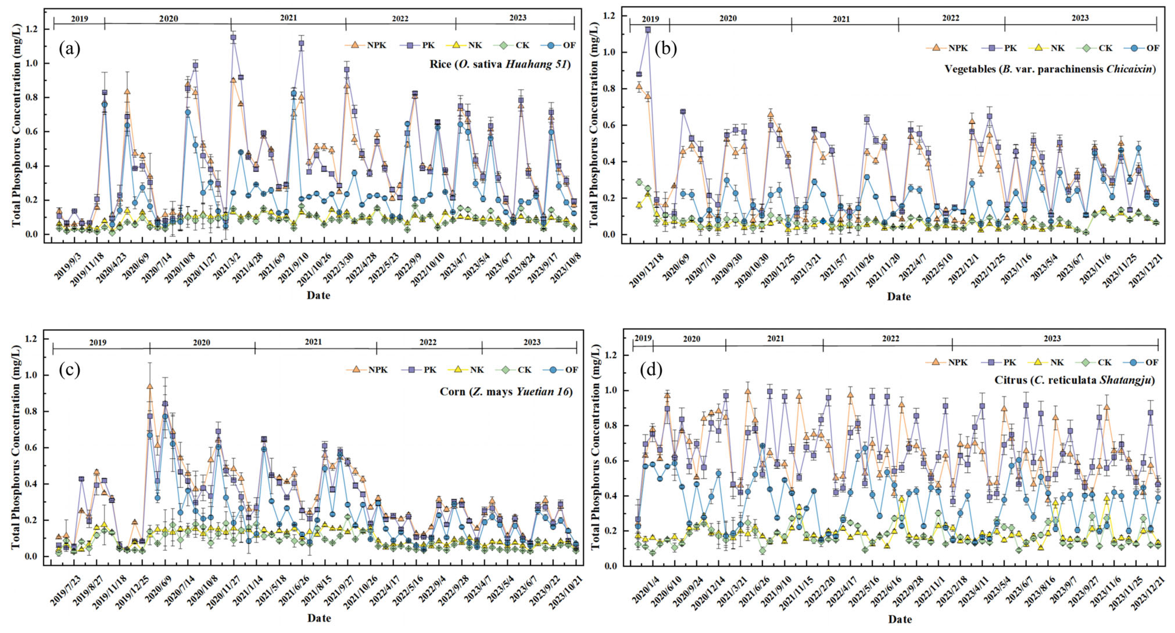 4.1. Causes for Fluctuation of Nitrogen and Phosphorus Concentrations Under Different Fertilization Treatments