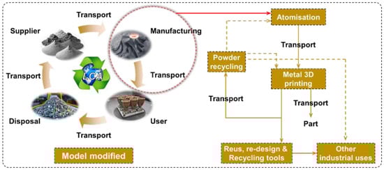 Although product use and service belong to the usage phase, they are closely related to the manufacturing process. Lightweight design and functional integration implemented during manufacturing can reduce energy consumption during the product’s service life (e.g., in vehicles, aerospace components, and machinery) [19], thereby enhancing environmental performance across the full life cycle. Resource efficiency is also reflected in this process; lighter and more efficient products imply reduced energy consumption and lower material usage. From a socio-economic perspective, user customization and servitization models (e.g., on-demand printing, replacement of components instead of entire products) can extend product lifespan, reduce resource consumption, and promote a circular economy.