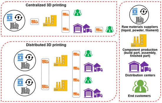 - Jha, D.; Sawant, R.; Mukherjee, S.; Ashvinbhai, A.; Upadhyay, R.K. Redefining Supply Chain and Related Aspects through Integration of 3D Printing Technology. Sustain. Manuf. Serv. Econ. 2025, 4, 100030. [Google Scholar] [CrossRef]