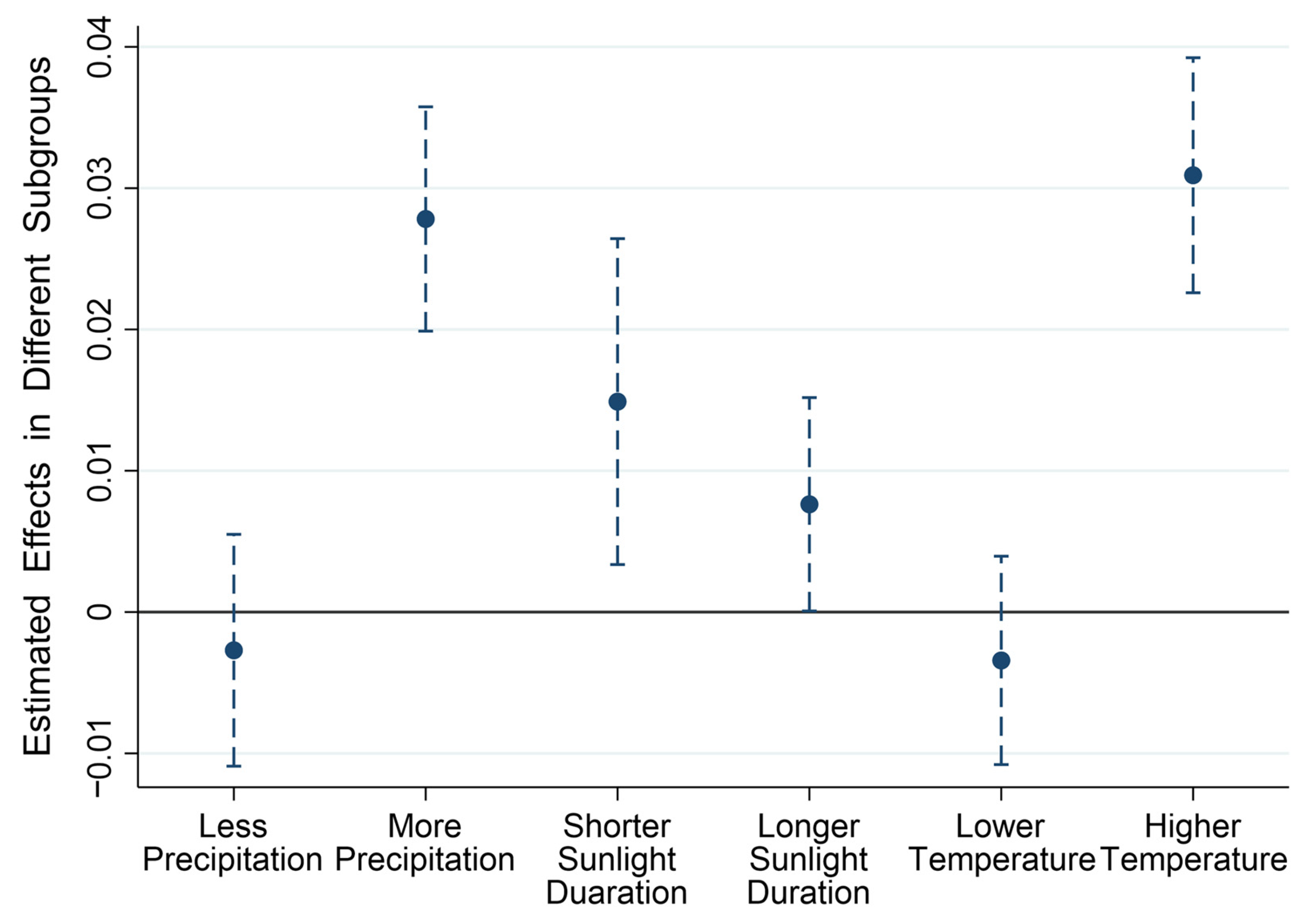5.2. Analysis on Heterogeneities Contingent on Climatic Conditions