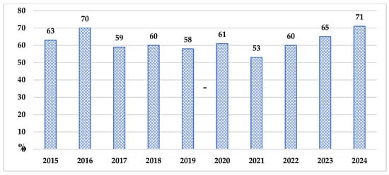 The sector is also a major foreign exchange earner, with agro-food products comprising about 60% of merchandise exports. According to the World Bank this sector contributed approximately 7.1% to the country’s gross domestic product (GDP) in 2024 [8] while in previous years it accounted for around 13–14%). In recent years, the sector, together with food processing, has accounted for over 18% of GDP and approximately 45% of the country’s export revenues [9]. Agriculture remains one of the key pillars of Moldova’s rural economy, ensuring food security, employment, and export potential.