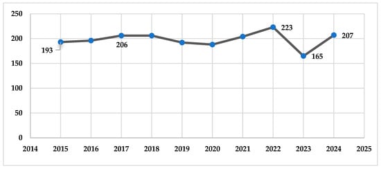 The average annual egg production per laying hen (in pieces) across Moldova from 2015 to 2024 reflect the productivity of the poultry sector, specifically in egg production, and provide insights into trends, fluctuations, and potential influencing factors such as farming practices, feed quality, and biosecurity measures (Figure 3).