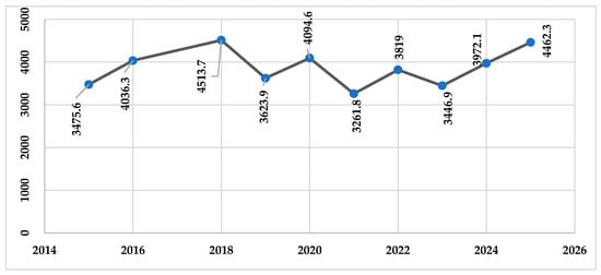 The analysis of the provided tables on livestock production, poultry production, poultry consumption, and egg production per layer, combined with contextual material, offers a comprehensive view of Moldova’s poultry sector from 2015 to 2025. The data reveal a sector characterized by growth potential, significant volatility, and emerging opportunities, particularly in the context of Moldova’s integration into the European Union (EU) market [54,55].