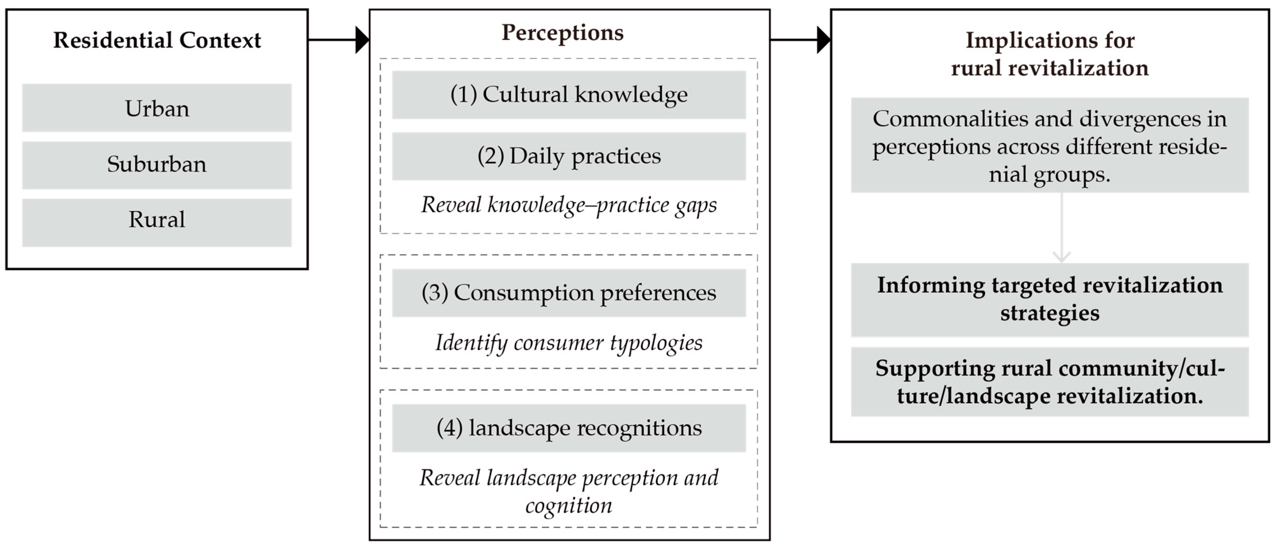 Cheng, Y.; Wang, W.; Kinoshita, T.; Ikebe, K. Perceptual Differences Across Urban, Suburban, and Rural Residents: A Residential-Context-Based Study on the Recognition of Tea Culture and Landscapes. Sustainability 2026, 18, 628. https://doi.org/10.3390/su18020628