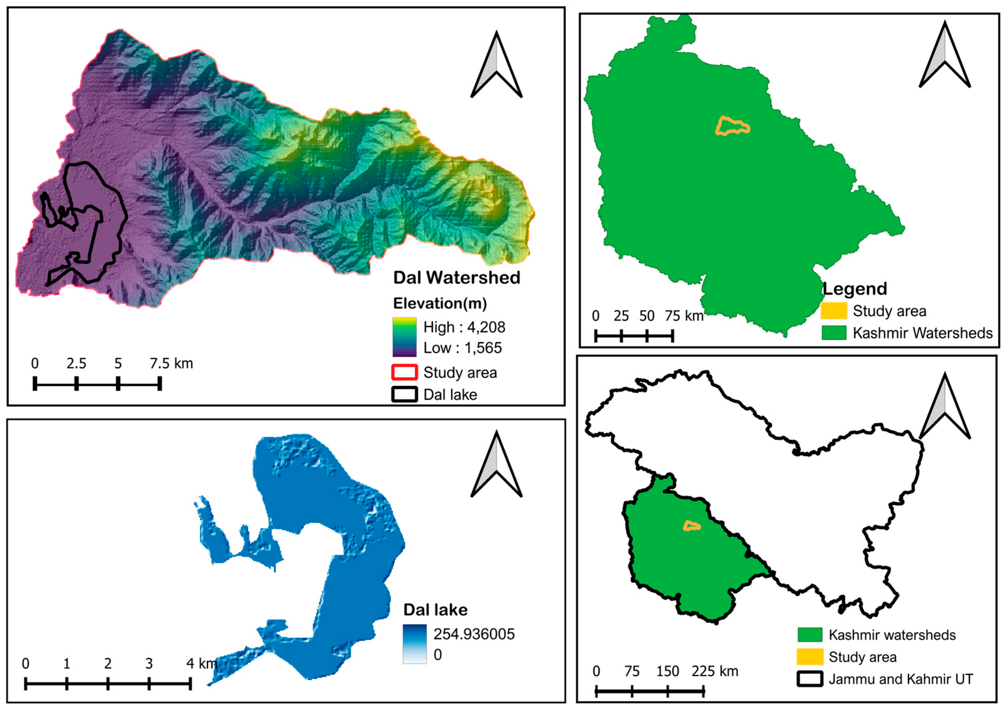 - Rather, I.A.; Dar, A.Q. Assessing the impact of land use and land cover dynamics on water quality of Dal Lake, NW Himalaya, India. Appl. Water Sci. 2020, 10, 219. [Google Scholar] [CrossRef]