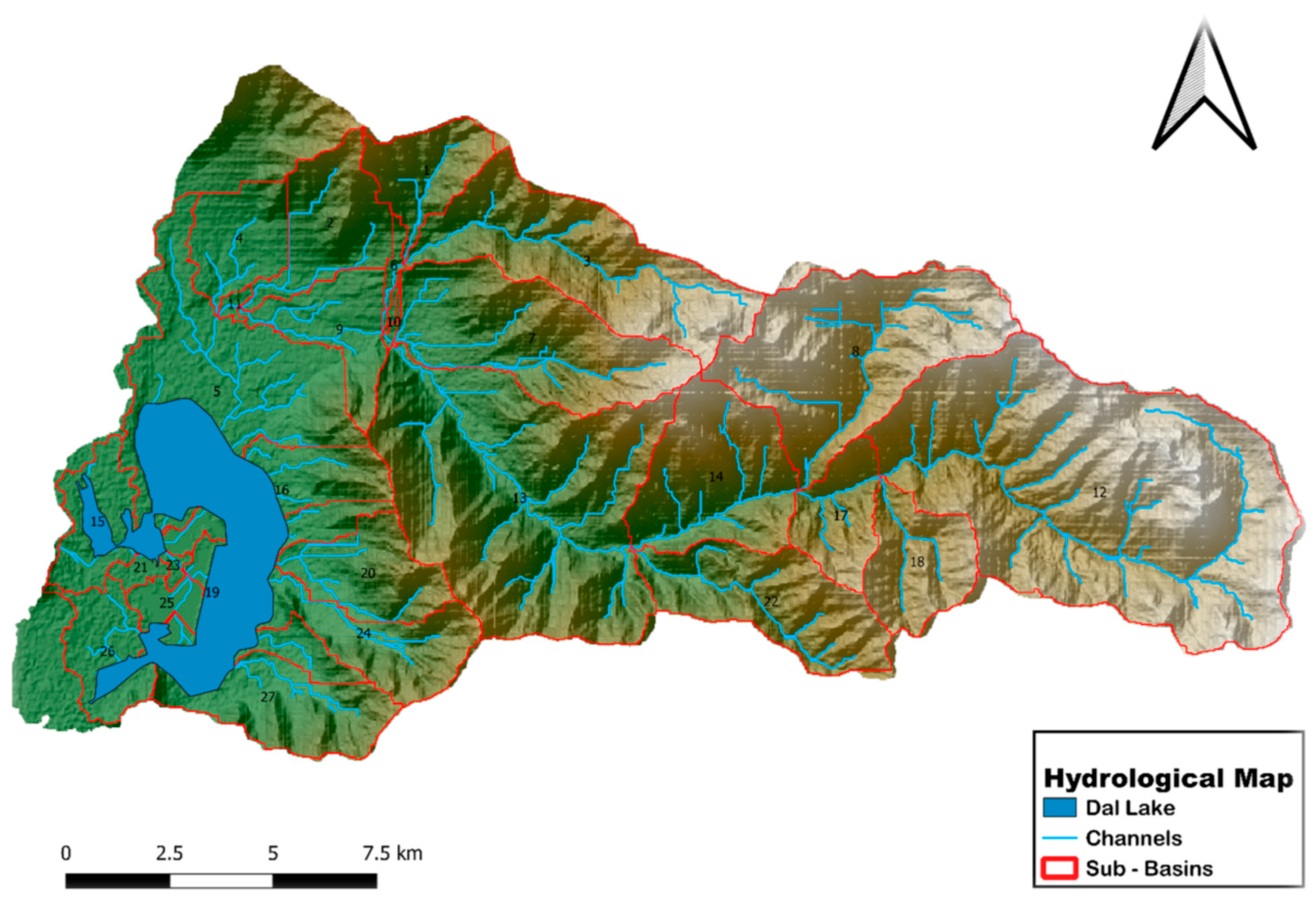 - Dal Lake. Wikipedia. Available online: https://en.wikipedia.org/wiki/Dal_Lake (accessed on 3 October 2025).
