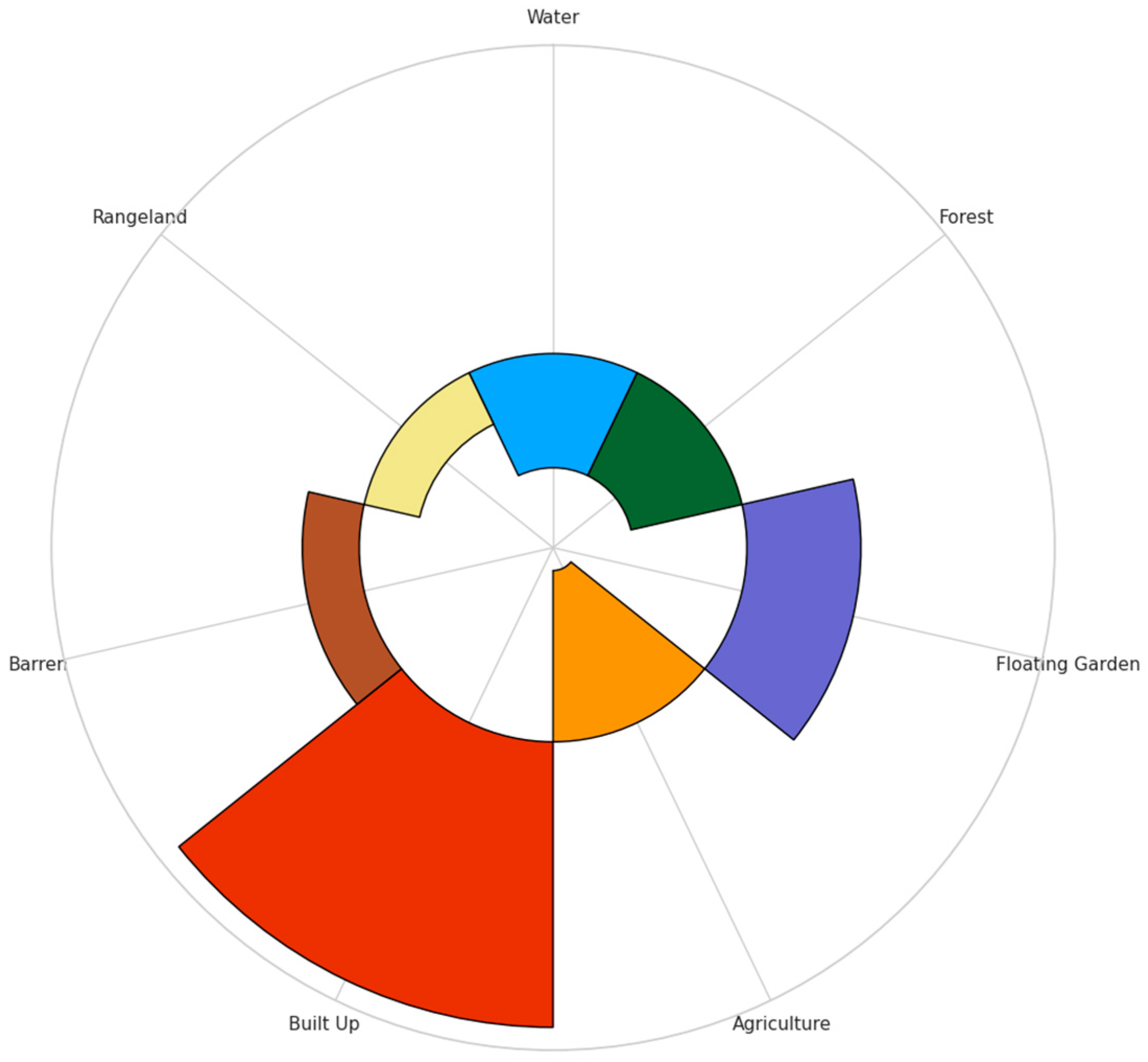 | LULC Class | Area (2017) m2 | Area (2024) m2 | Change (m2) | Change, (%) |
