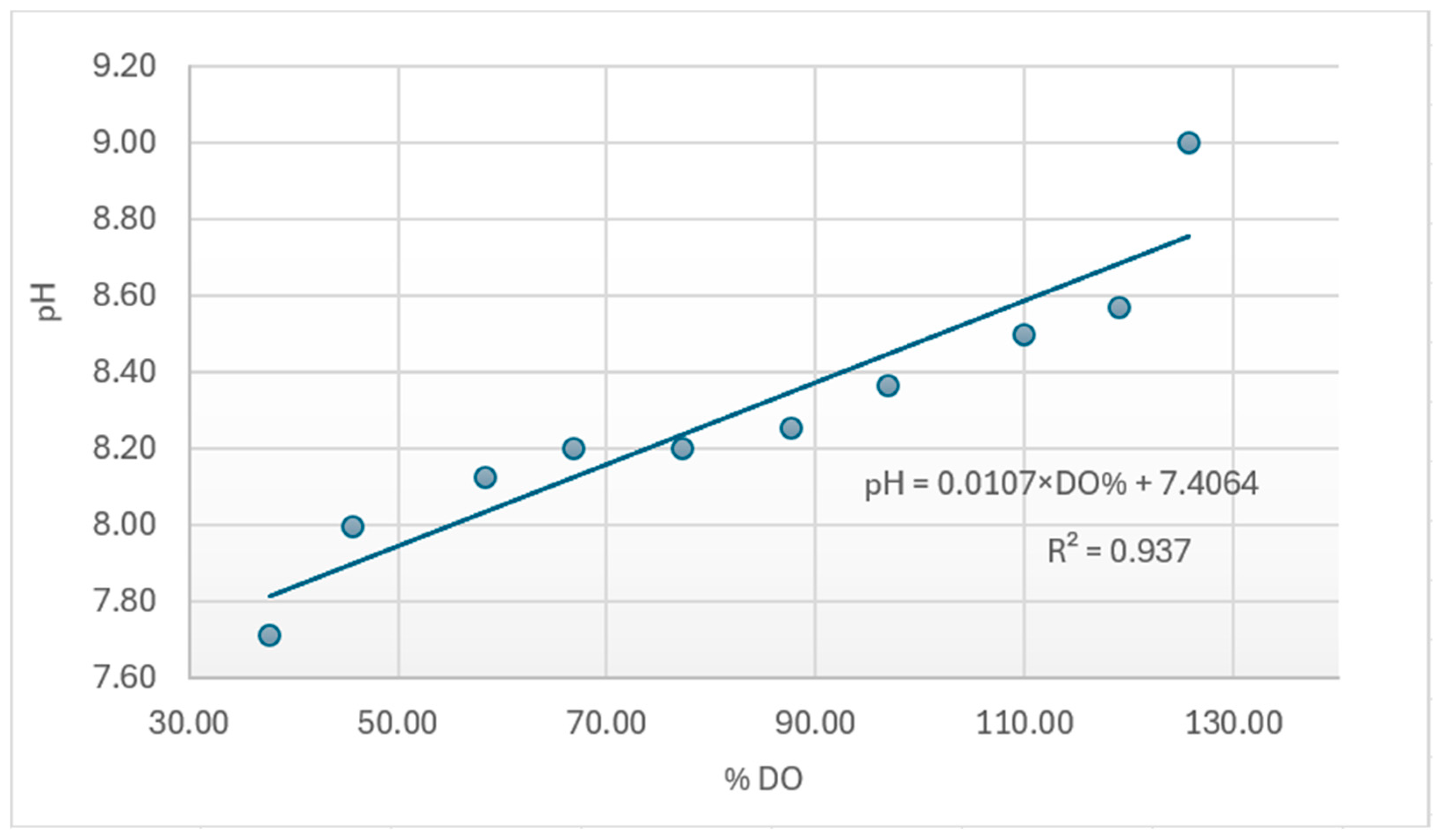 - [DO%]—water saturation with oxygen, measured simultaneously with pH