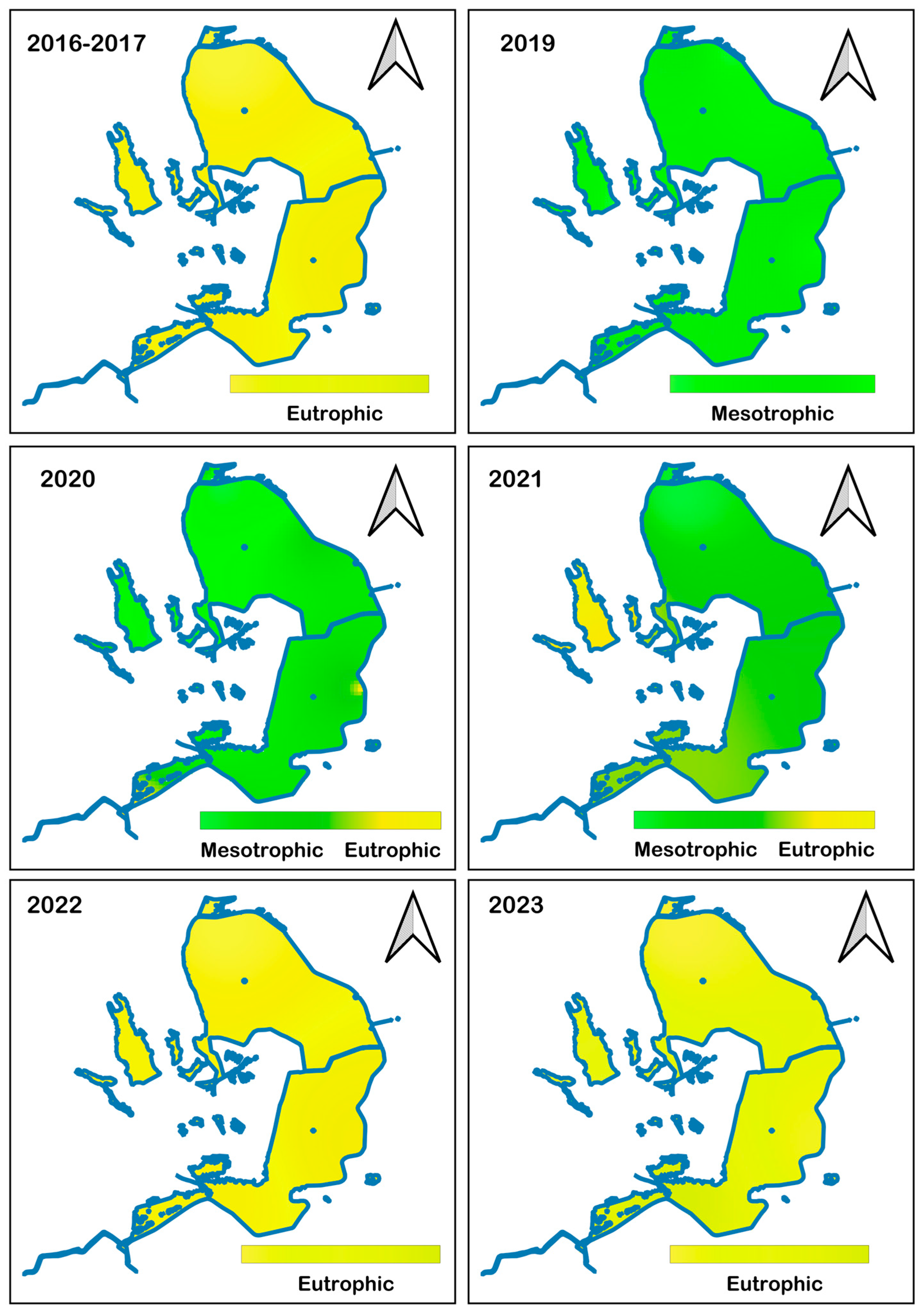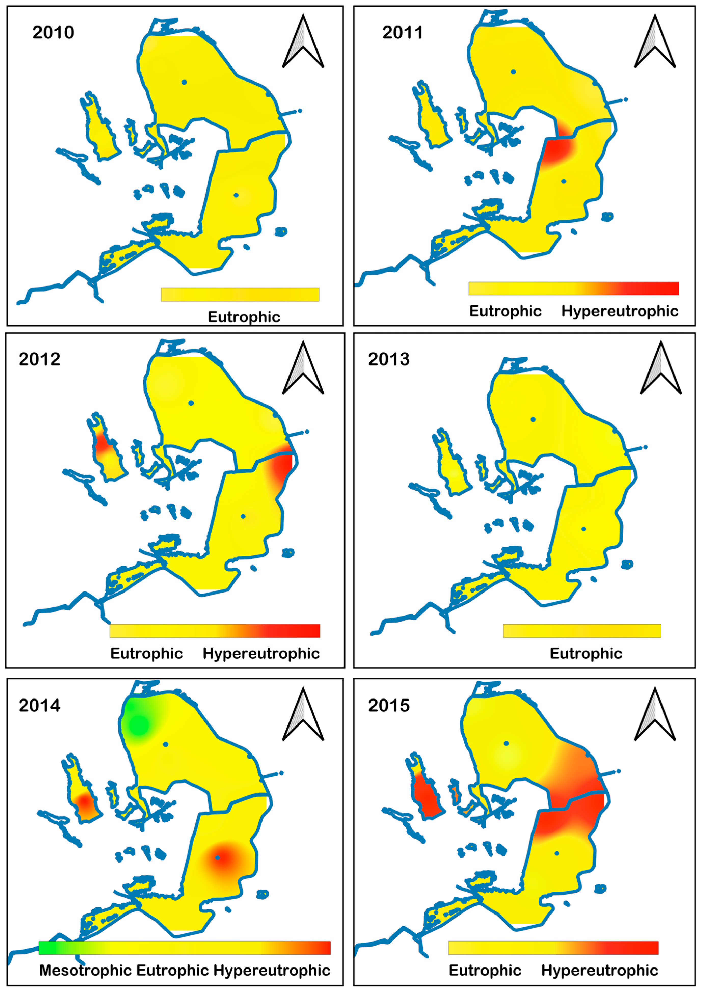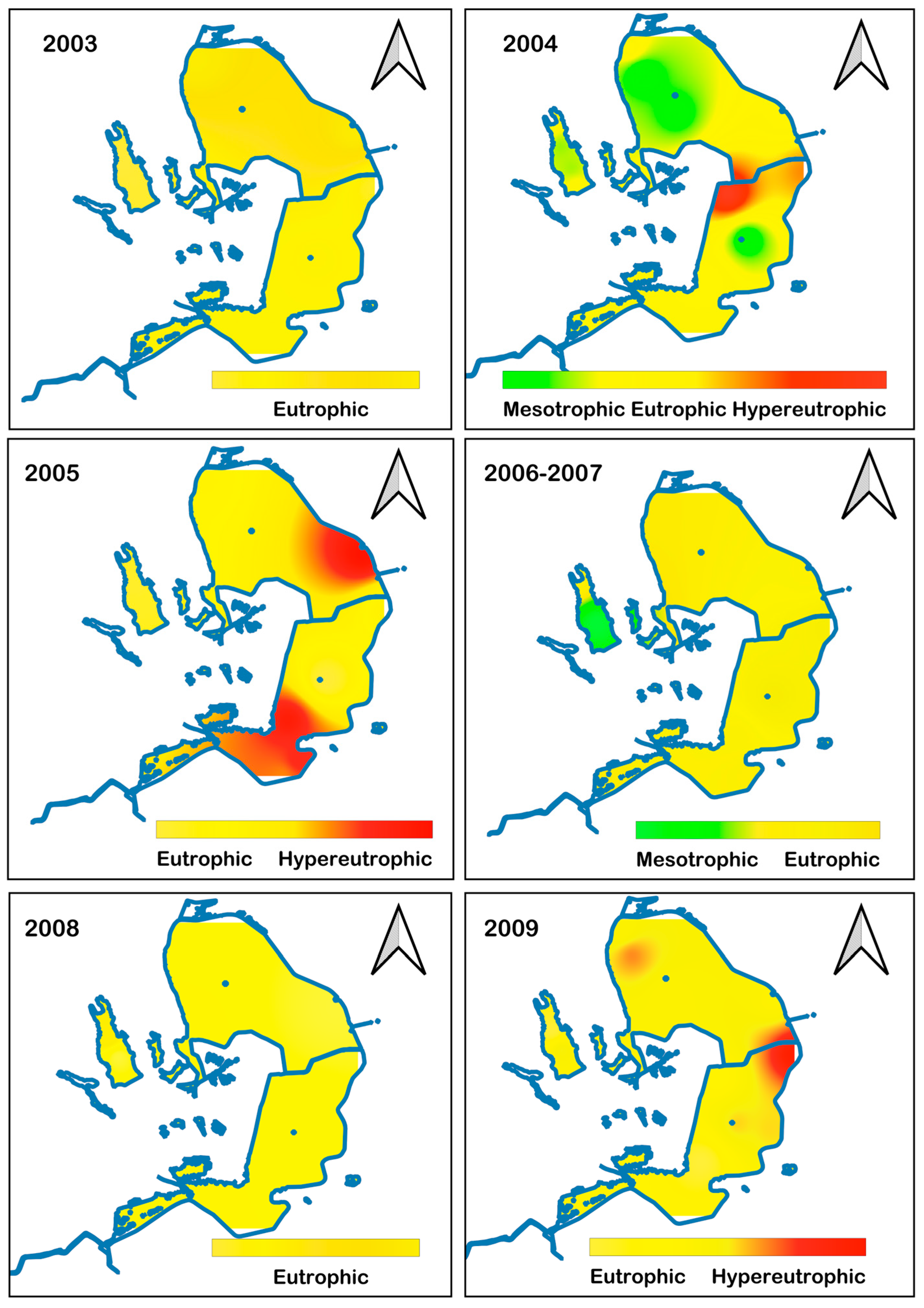 5.2. Temporal Progression of Eutrophication Development Based on ITS Assessment Method