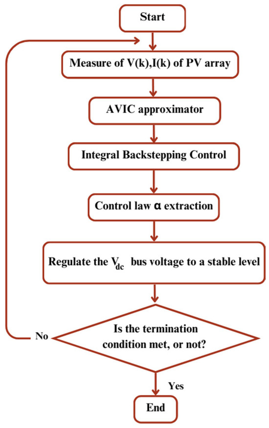 The proposed control technique integrates the strengths of Advanced Variable Step Size Incremental Conductance (AVIC) and Integral Backstepping (IBC) to improve the performance of the PV system. The flow diagram of the suggested hybrid MPPT technique is highlighted in Figure 2.