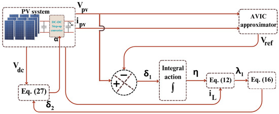 The Vpv needs to track the set point Vref to ensure that the error δ1 is near zero. Substituting the Vpv derivative with its corresponding Equation (1) in the derivative of Equation (4) results in