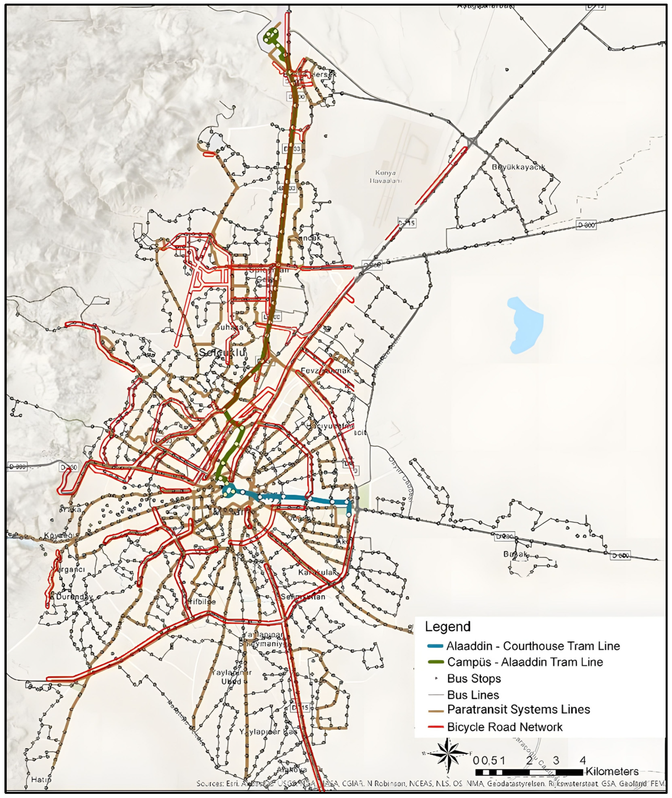 | Public transport services are unplanned, in-vehicle equipment is inadequate, service quality is low, and environmental–social sustainability cannot be achieved. Public transport data is not collected or is collected to a limited extent. | There are electronic fare collection systems in public transport vehicles. Part of the fleet consists of environmentally friendly and disabled accessible vehicles. Public transport data is collected at a basic level but is not analyzed. | With public transport fleet management, vehicle tracking and vehicle and driver assignments are performed, and passengers are informed instantly. The majority of the fleet is environmentally friendly and accessible. Public transport data is analyzed and used for service improvements. | The public transport system is safe, inclusive, affordable, and comfortable. The majority of the fleet is low or zero emission. Line planning and optimization are carried out with data analytics. | Public transport service quality is high and integrated with the entire transportation system. It covers a large part of the trips by reducing the use of private vehicles. It is a constantly improving system that ensures seamless travel, with the entire fleet having low or zero emissions. |