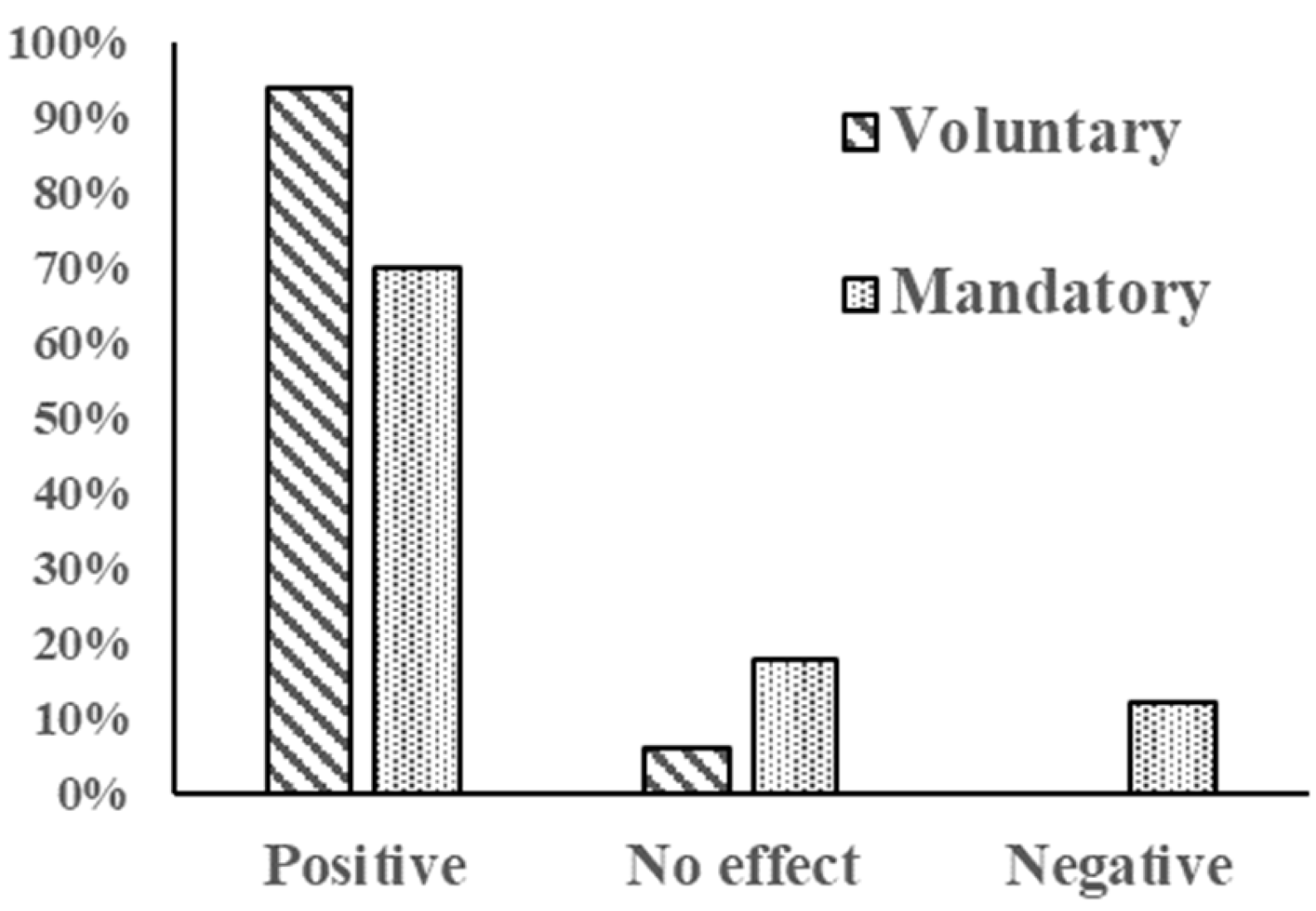3.4. Reported LO by Type of Participation (Voluntary vs. Mandatory)