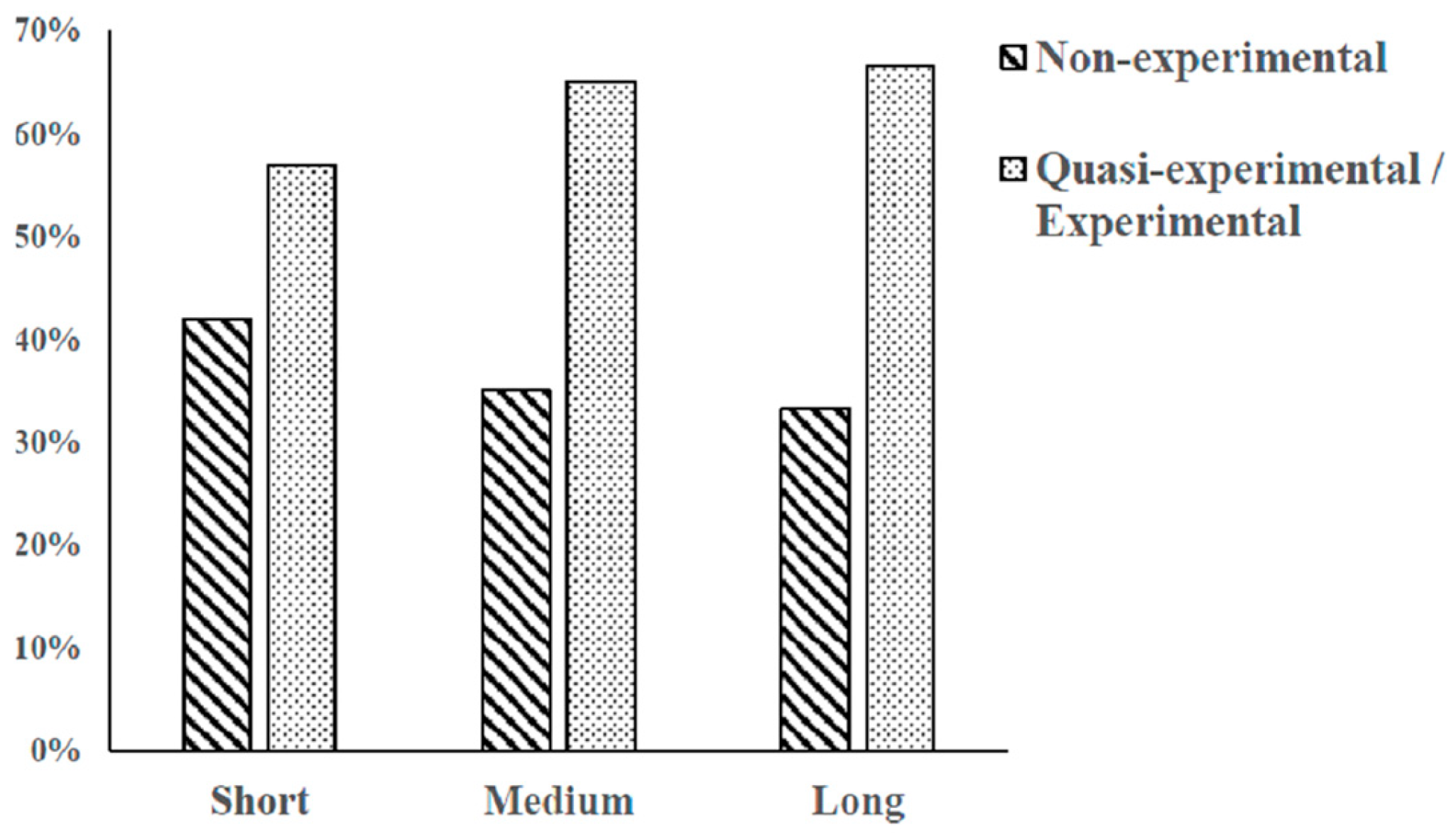 | Quasi-experimental | 40% | 32% | 28% | 60% | 32% | 8% | 40% | 36% | 8% | 16% |