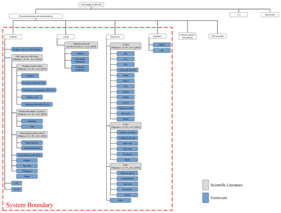 - Lopez, S.; Akizu-Gardoki, O.; Lizundia, E. Comparative Life Cycle Assessment of High Performance Lithium-Sulfur Battery Cathodes. J. Clean. Prod. 2021, 282, 124528. [Google Scholar] [CrossRef]