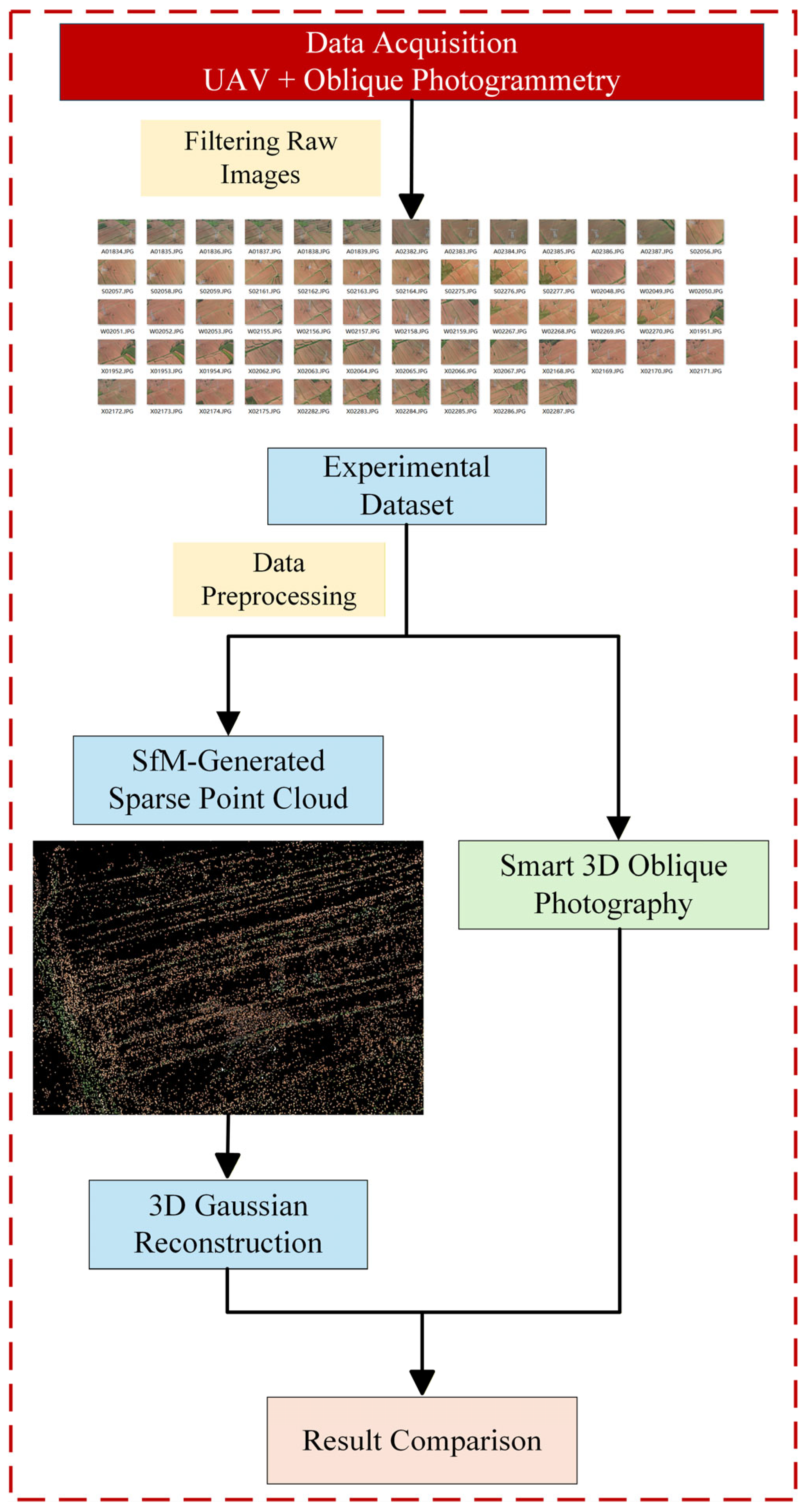 Reconstruction methods based on oblique photogrammetry generate 3D models by capturing multi-view RGB images via UAV oblique photogrammetry [