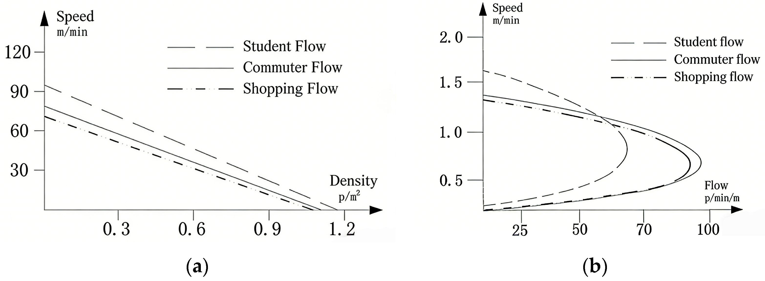 - Incorporating Socio-Cultural and Contextual Factors: Beyond physical avoidance behaviors, future models should incorporate socio-cultural norms governing crowd movement, such as culturally specific passing preferences and emergent leader-follower phenomena under extreme crowding conditions. The integration of “environmental attraction fields” and scenario-specific constraints—such as shopping behaviors—would enable more authentic representation of directional flow preferences observed in commercial streets, significantly expanding the model’s applicability across diverse cultural contexts.
