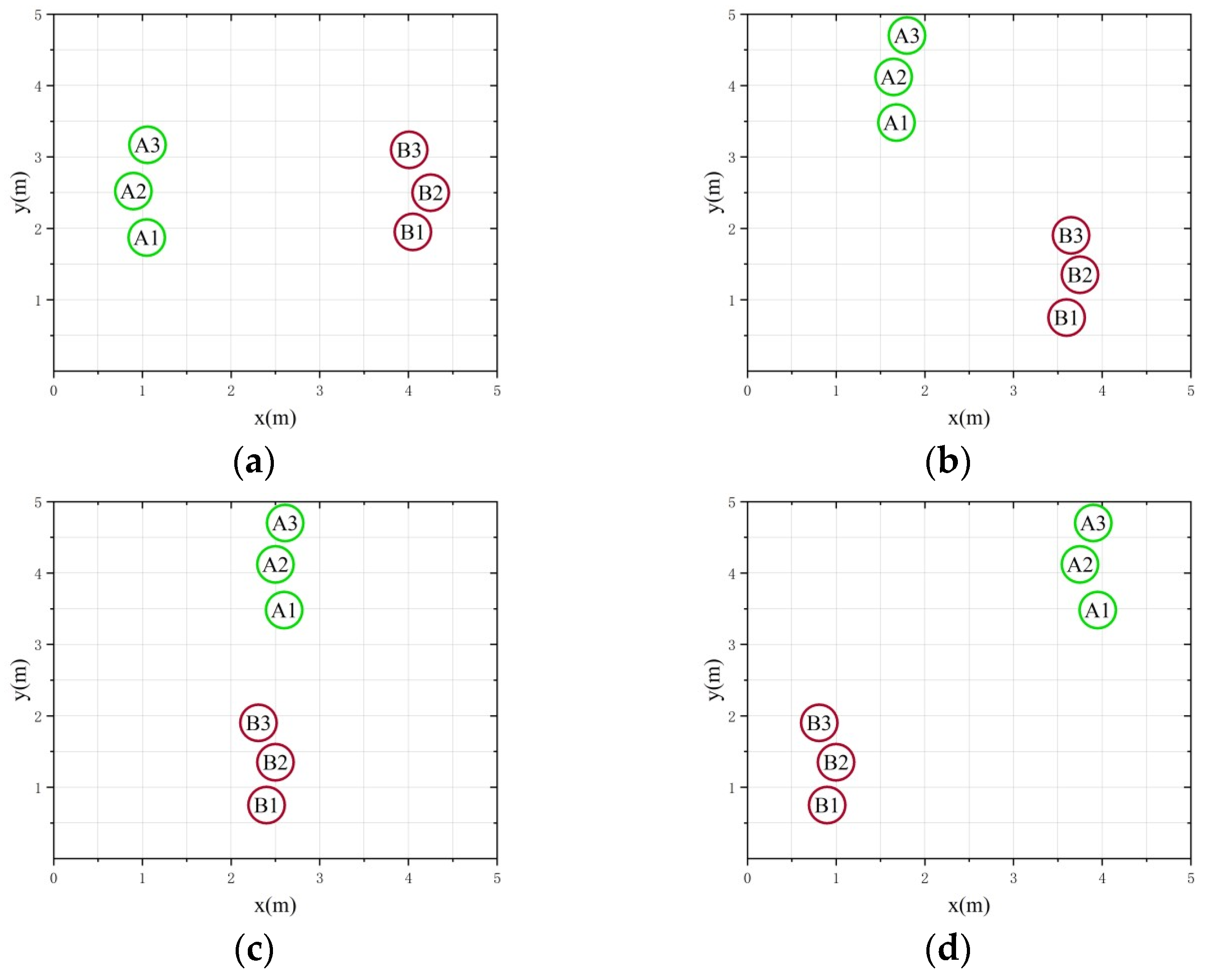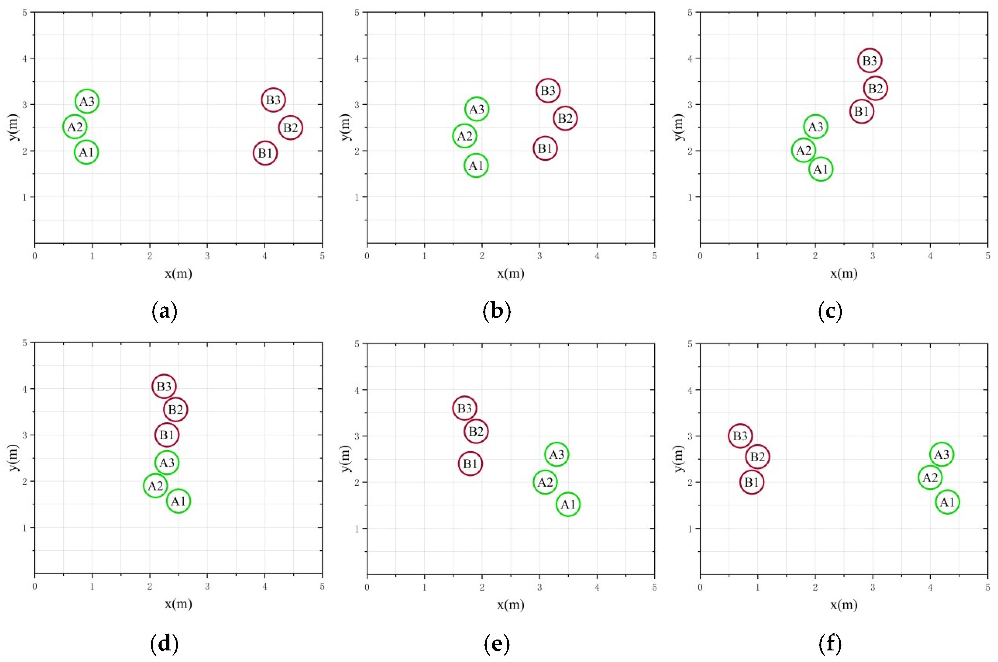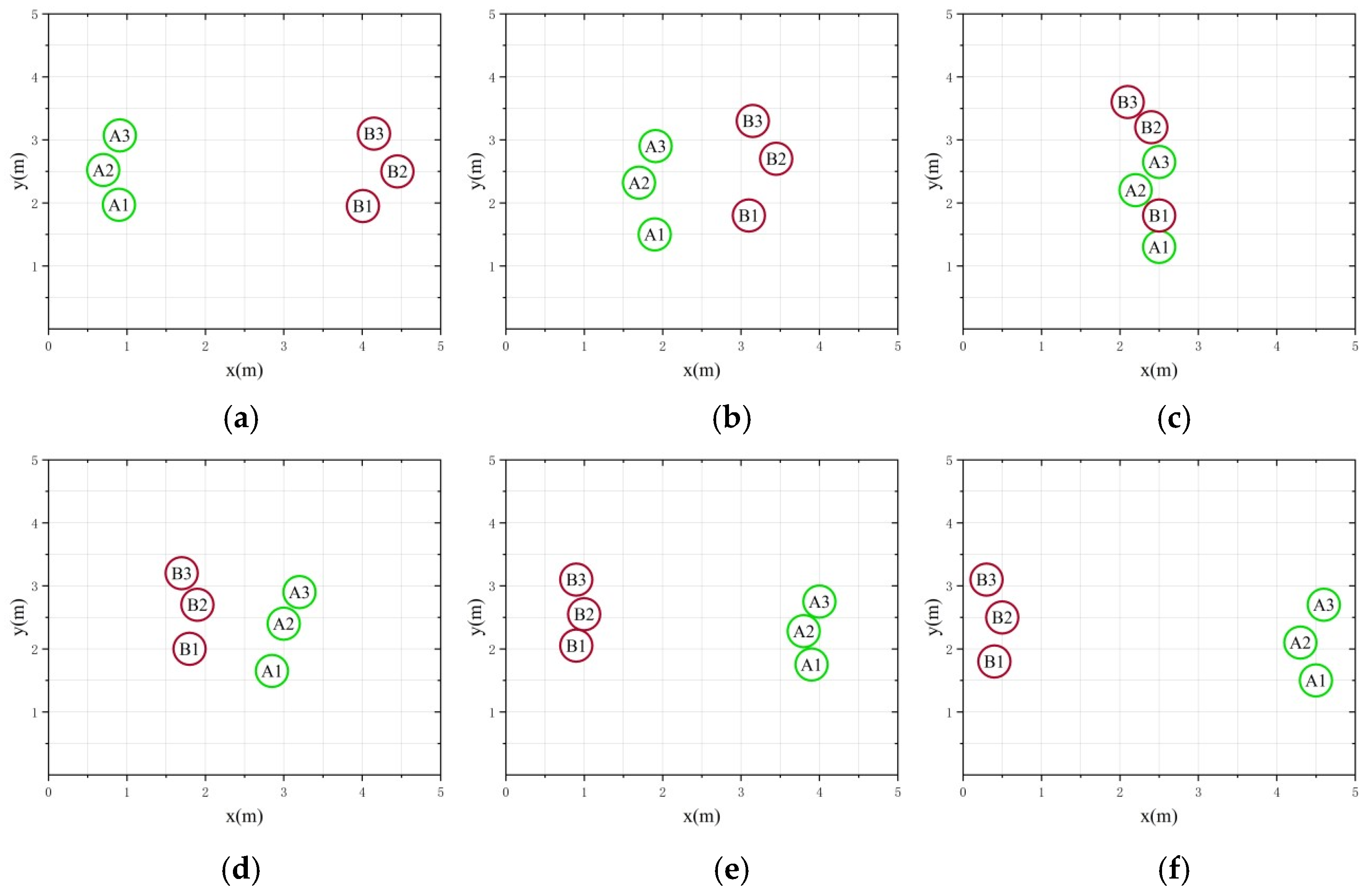 - Enhanced Behavioral Mechanism Modeling: The classical social force model was extended through the incorporation of a visual perception mechanism (constrained to a 120° field of view), group-type categorization (friends, couples, families, middle-aged/elderly), and collective avoidance forces. These enhancements enable the model to accurately replicate key behavioral patterns observed in commercial streets, including proactive gap selection based on visual assessment of others’ movements; spatial cohesion maintenance specific to group type; and the execution of either unified or inter-weaving avoidance strategies between groups.