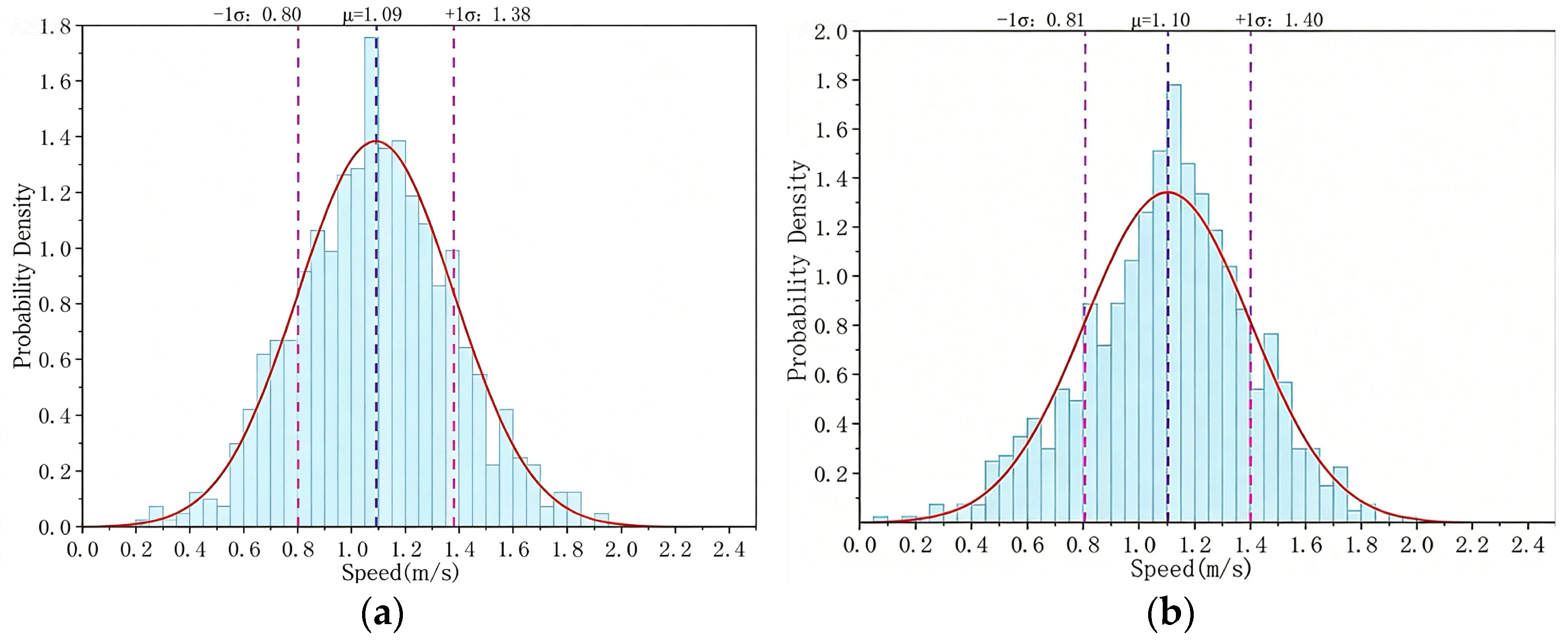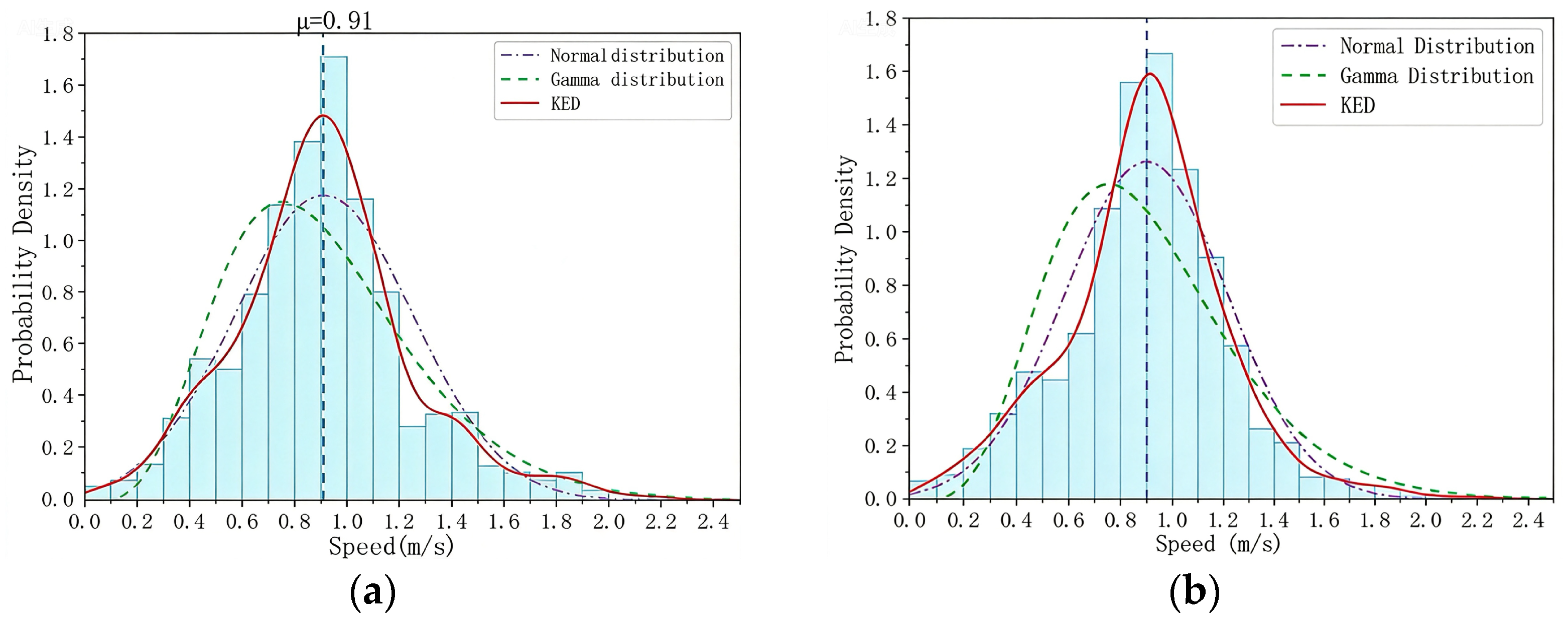 5.2.1. Comparison of Pedestrian Speed Distribution