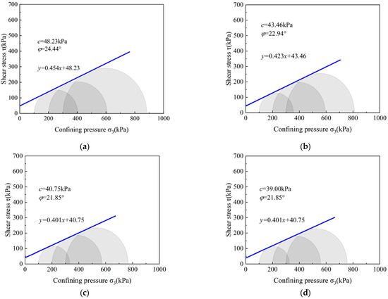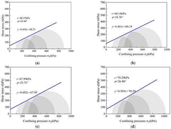Strength envelope under drying and wetting cycles: (a) Cycle 0; (b) Cycle 1; (c) Cycle 5; (d) Cycle 10.
