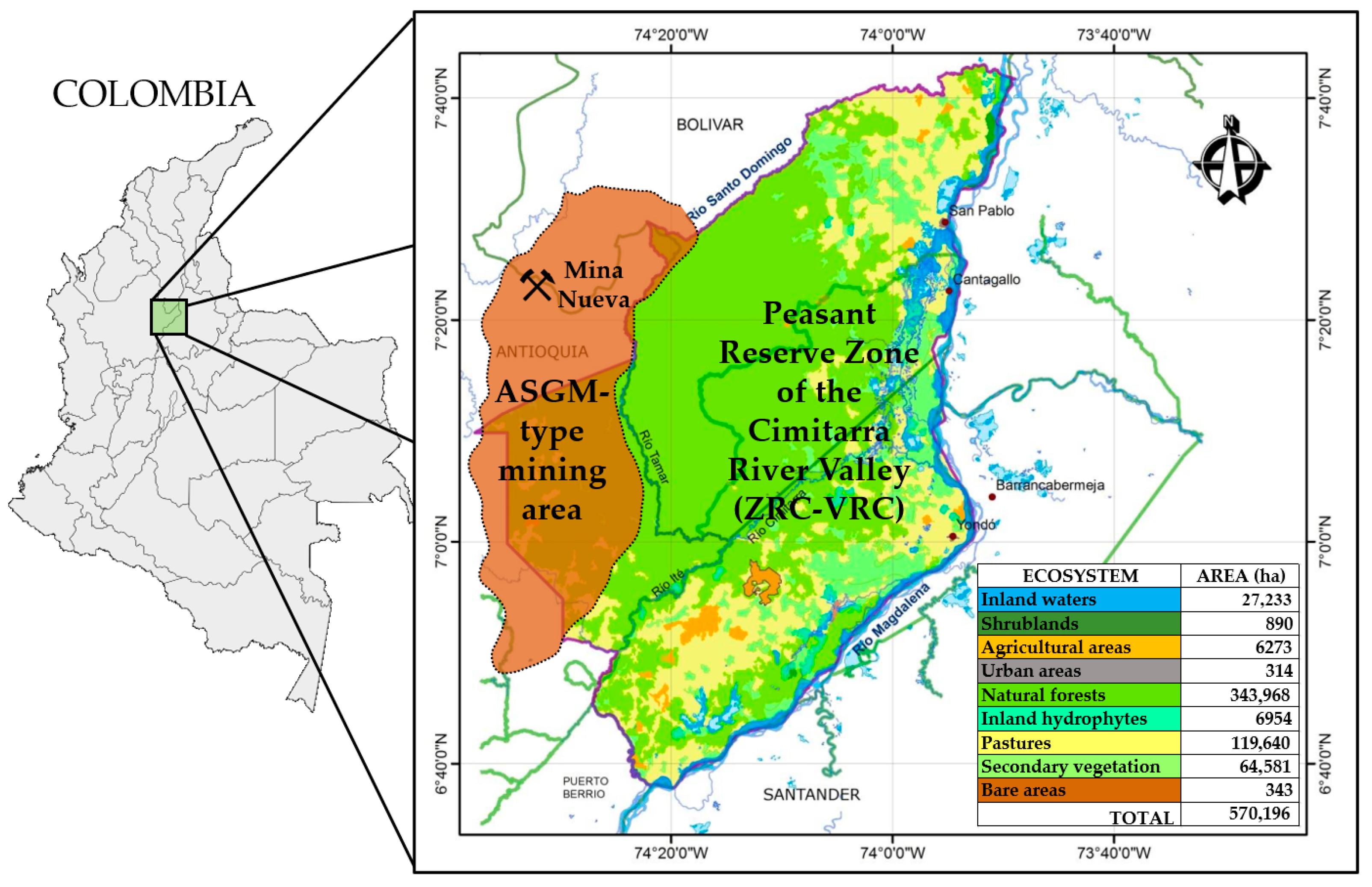 - Rochlin, J. Informal gold miners, security and development in Colombia: Charting the way forward. Extr. Ind. Soc. 2018, 5, 330–339. [Google Scholar] [CrossRef]