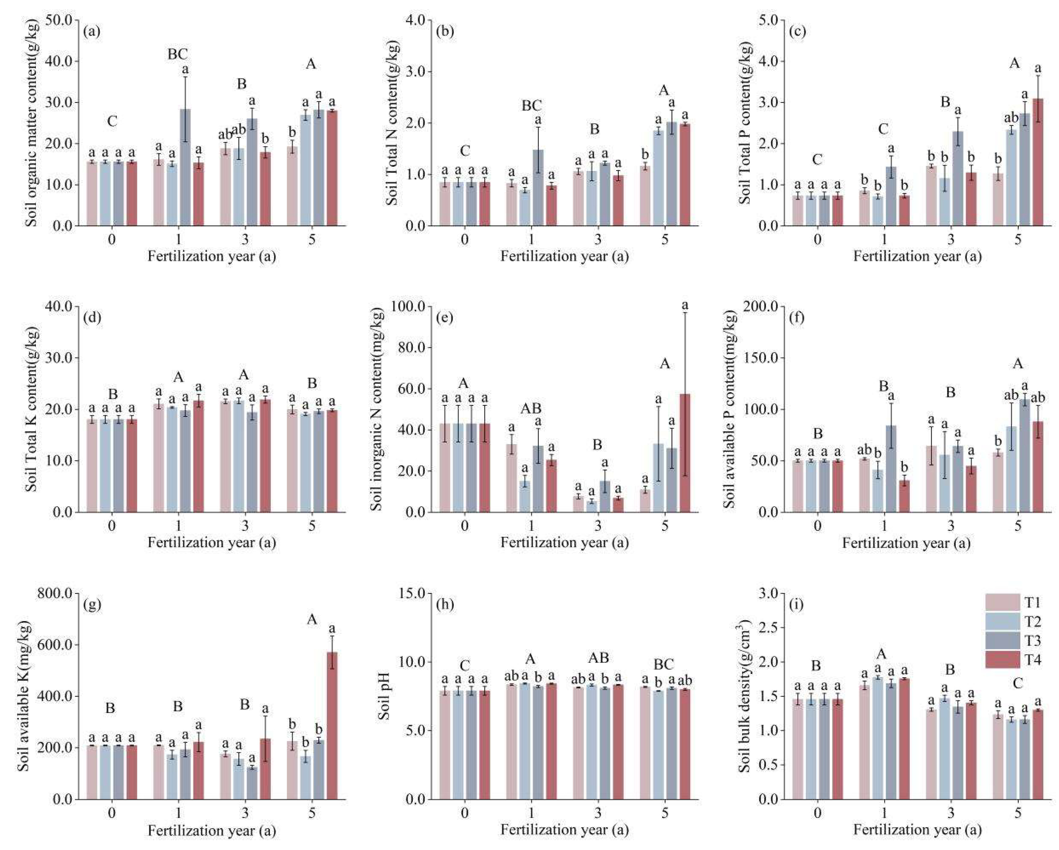 3.1. Effects of Continuous Sludge Application on Soil Physicochemical Properties