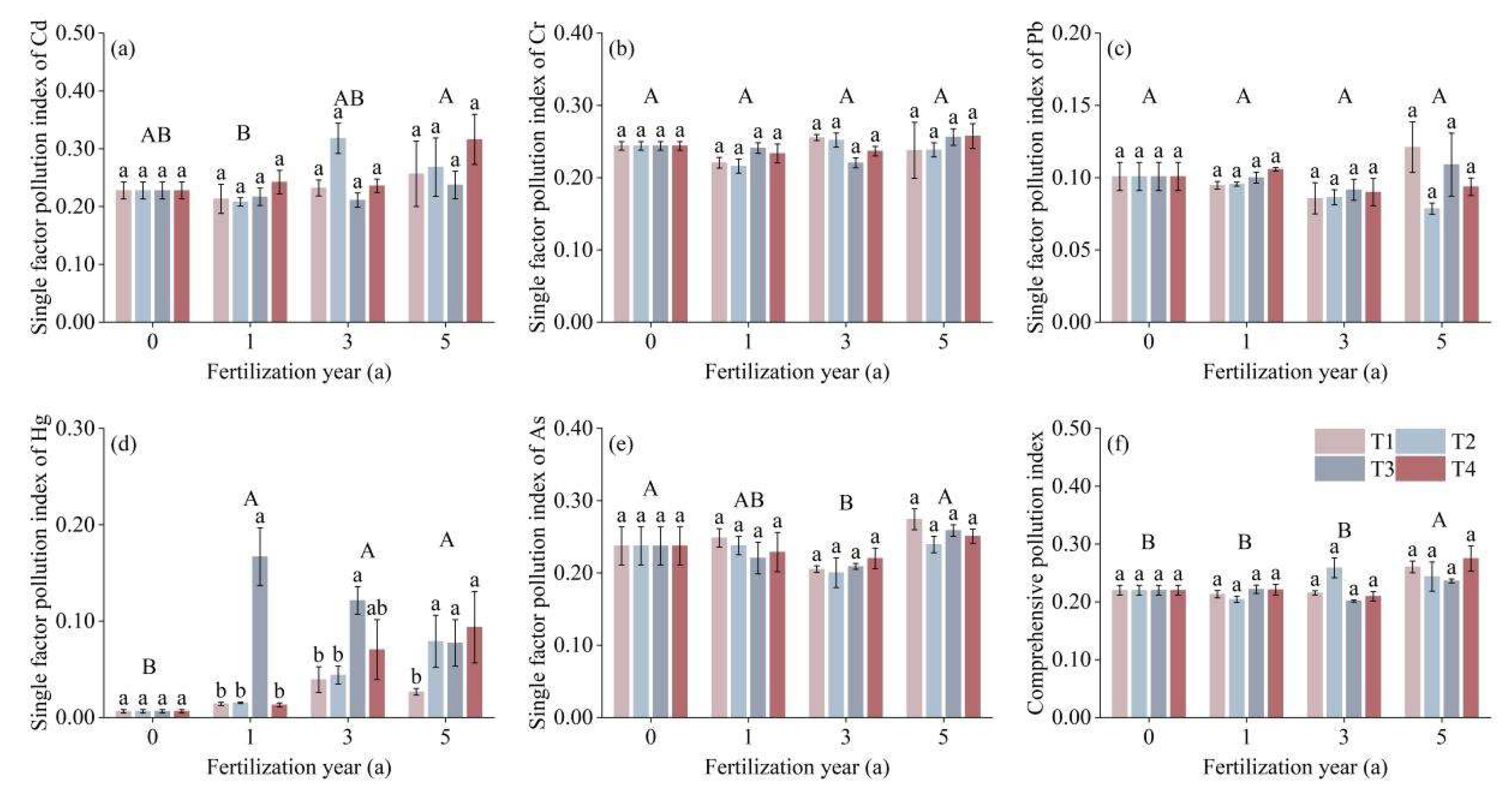 3.2. Effects of Continuous Sludge Application on PI and NIPI of Soil Heavy Metal Contents