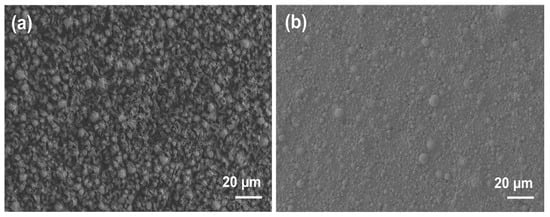 Scanning electron micrographs of (a) the Span-80/Tween-80/wax (6 wt%) emulsion (SE) and (b) the CNC-SA/wax (1 wt%) emulsion (PE) dried on polished silicon substrates.