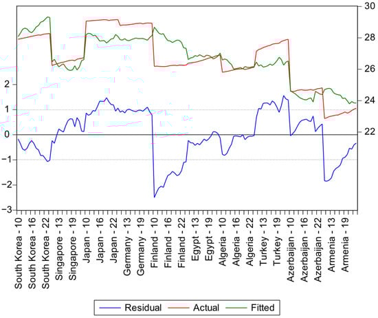 Accordingly, this study uses real GDP at constant prices (US$2015) as an indicator of actual productivity, enabling the measurement of the true impact of digitalization and artificial intelligence within the framework of national accounts, free from accounting distortions resulting from price changes or inflation [27]. This choice contributes to improving the accuracy of economic analysis, particularly in comparative studies between advanced and developing economies, where inflation rates and price structures differ significantly.