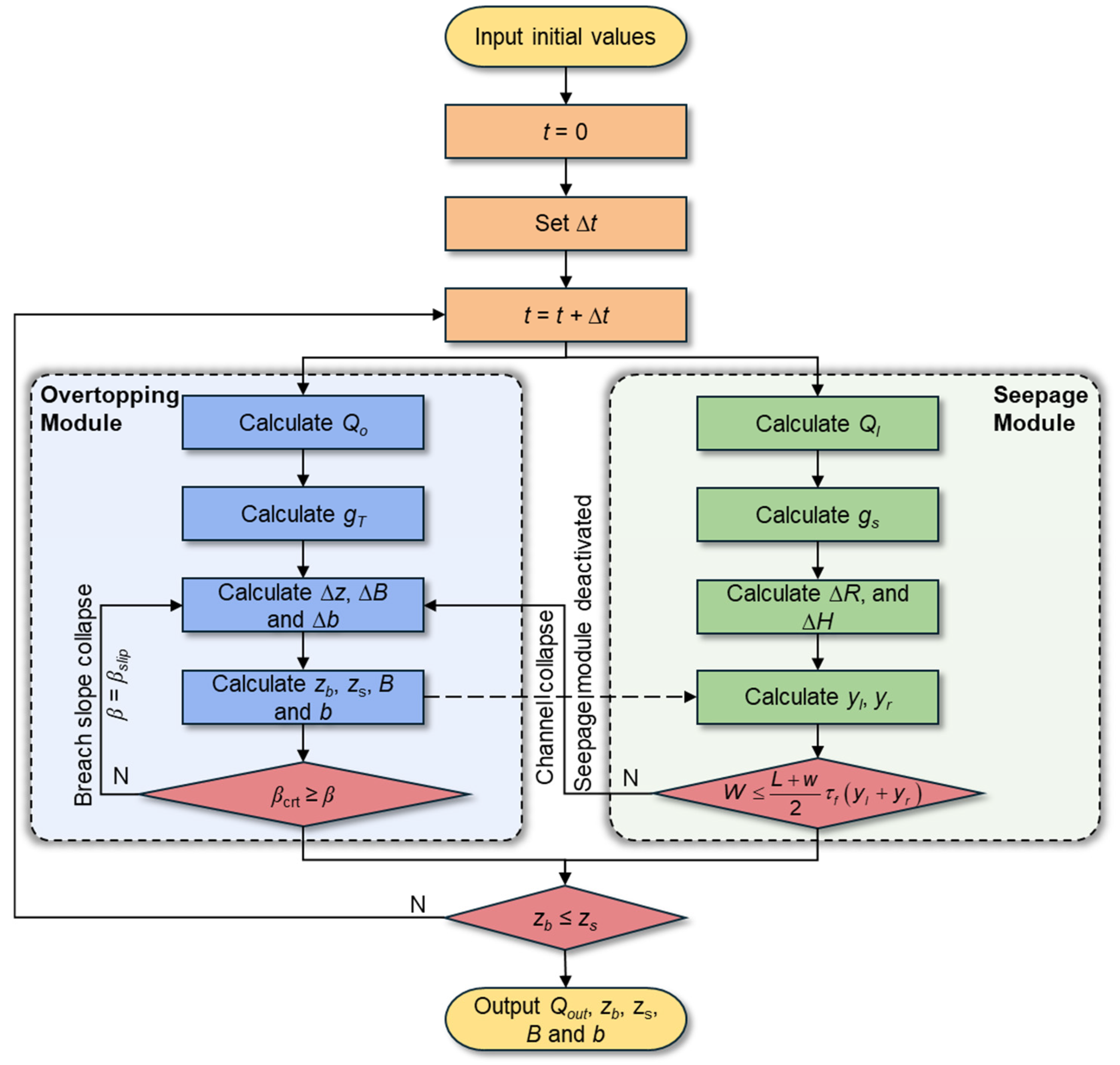42]. Although this combined failure is common and important, to the best of our knowledge, mathematical models specifically designed to simulate the breach process under the simultaneous coupled action of overtopping and seepage remain limited in the literature. Consequently, the limitations of current models necessitate additional research efforts in this domain.