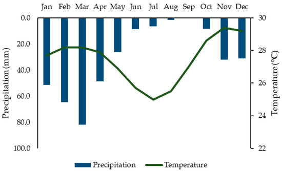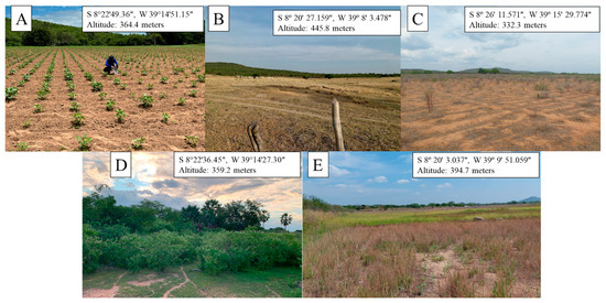 The climate of the region is classified by Köppen as semi-arid (BSh), characterized by low rainfall and highly irregular distribution [31]. According to records from Superintendence for the Development of the Northeast (SUDENE) (1961–1980) and National Institute of Meteorology (INMET) (1980–1990), for the period 1961–1990, the average annual rainfall in the CDN region was 541 mm [4]. More recent data from Pernambuco Water and Climate Association (APAC) [32] indicate a decline to 352 mm per year, representing a reduction of approximately 35%. This substantial decrease makes the region highly susceptible to soil degradation and desertification.