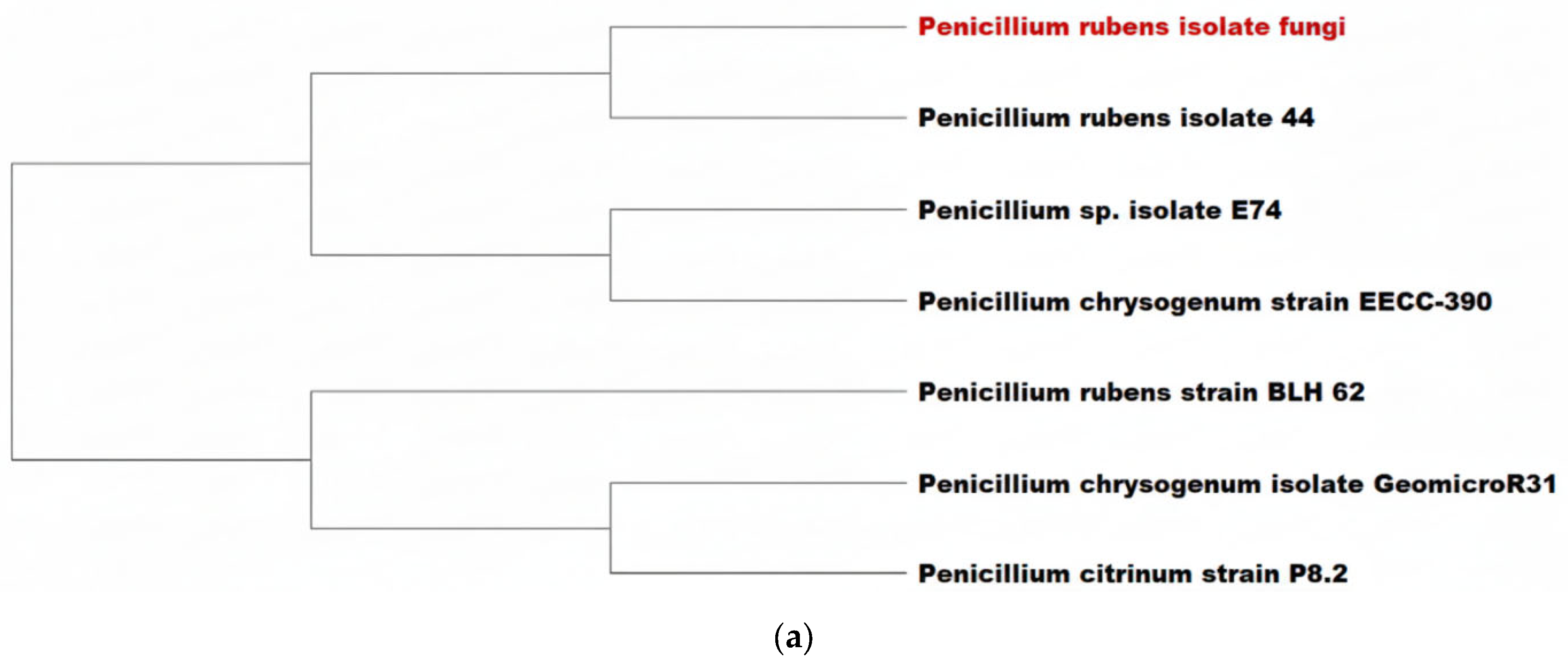 2.4. Identification of the Fungal Isolates