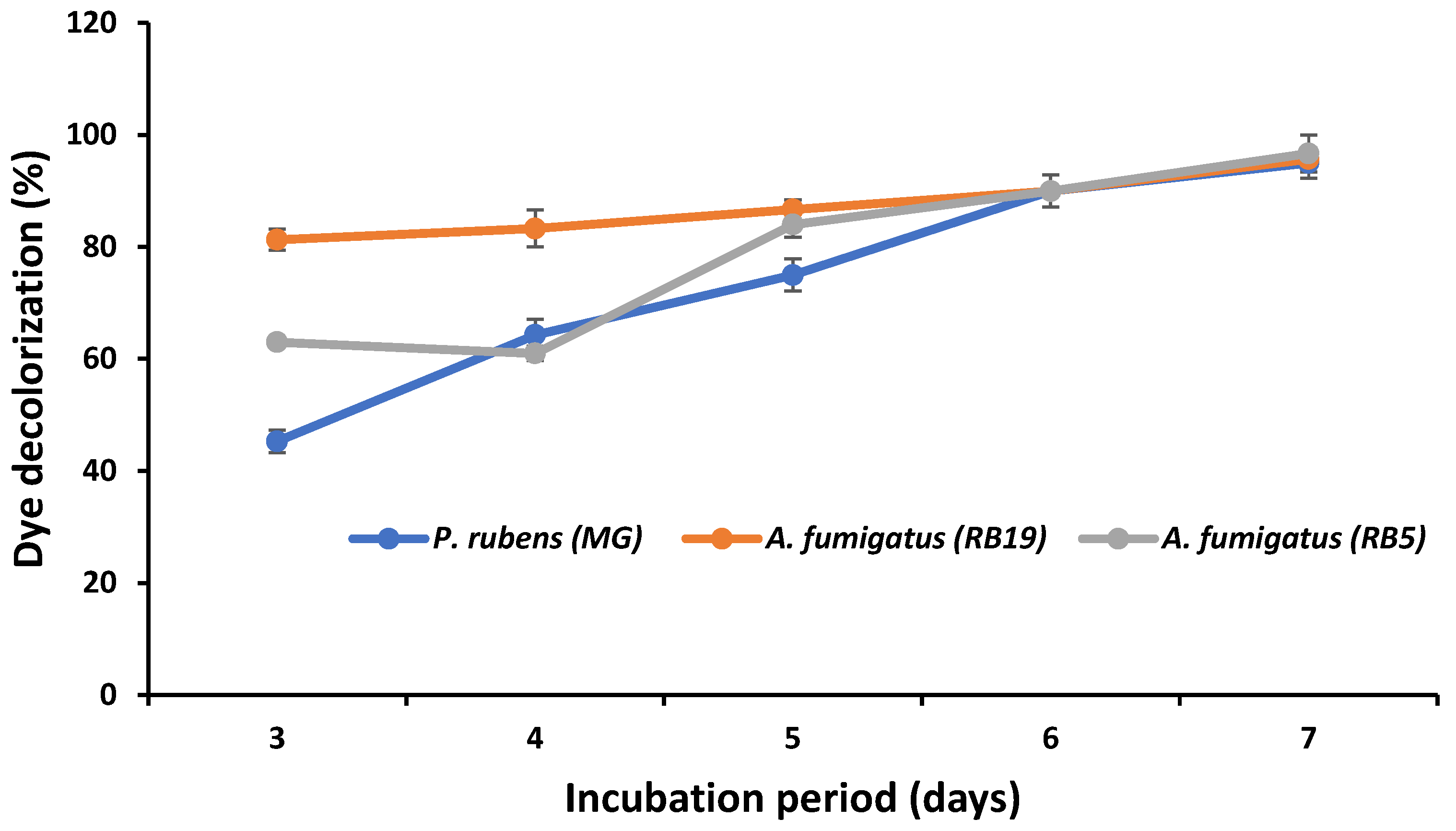 | Decolorized RB19 by A. fumigatus | 17,250 ± 27 | 7931 ± 11 |