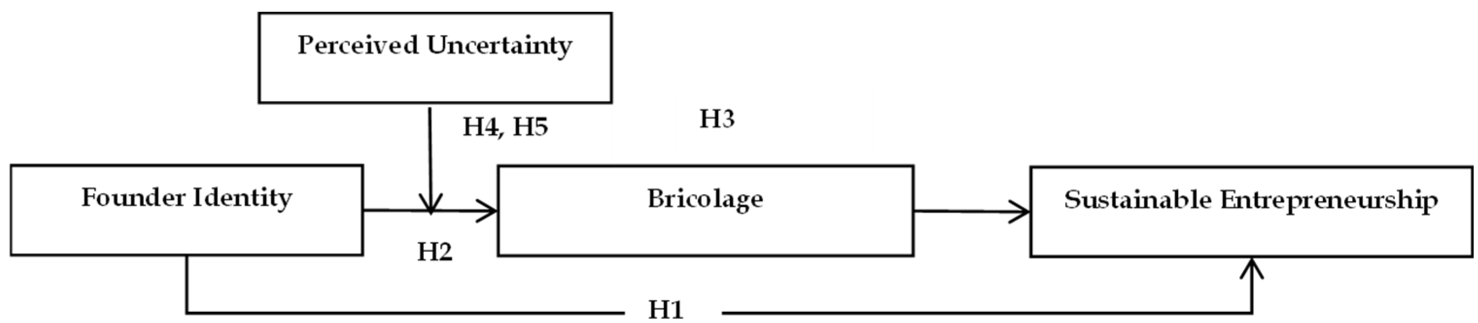 2.4. Founder Identity, Perceived Uncertainty, Bricolage and Sustainable Entrepreneurship