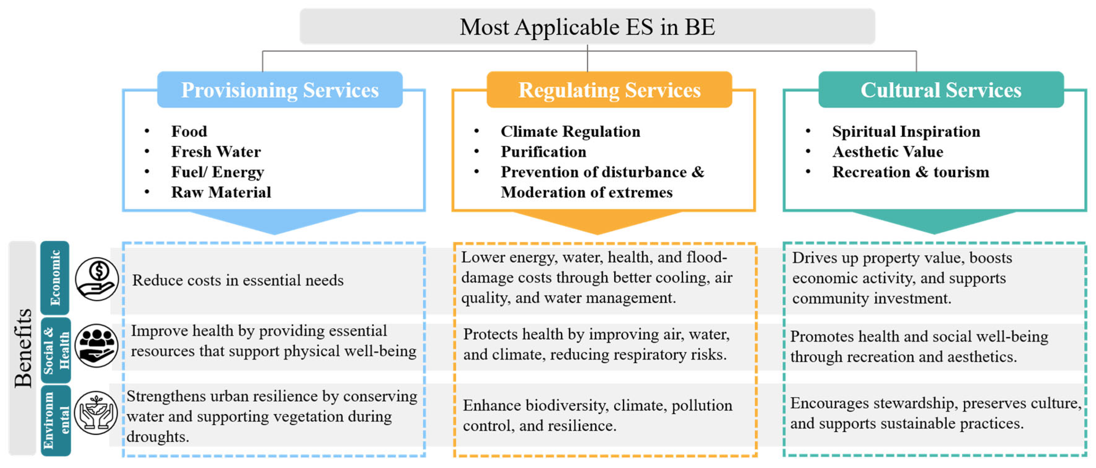 - Contribution to Ecosystem Services: One or more essential ecosystem services, such as providing, regulating, or cultural, must be properly provided.