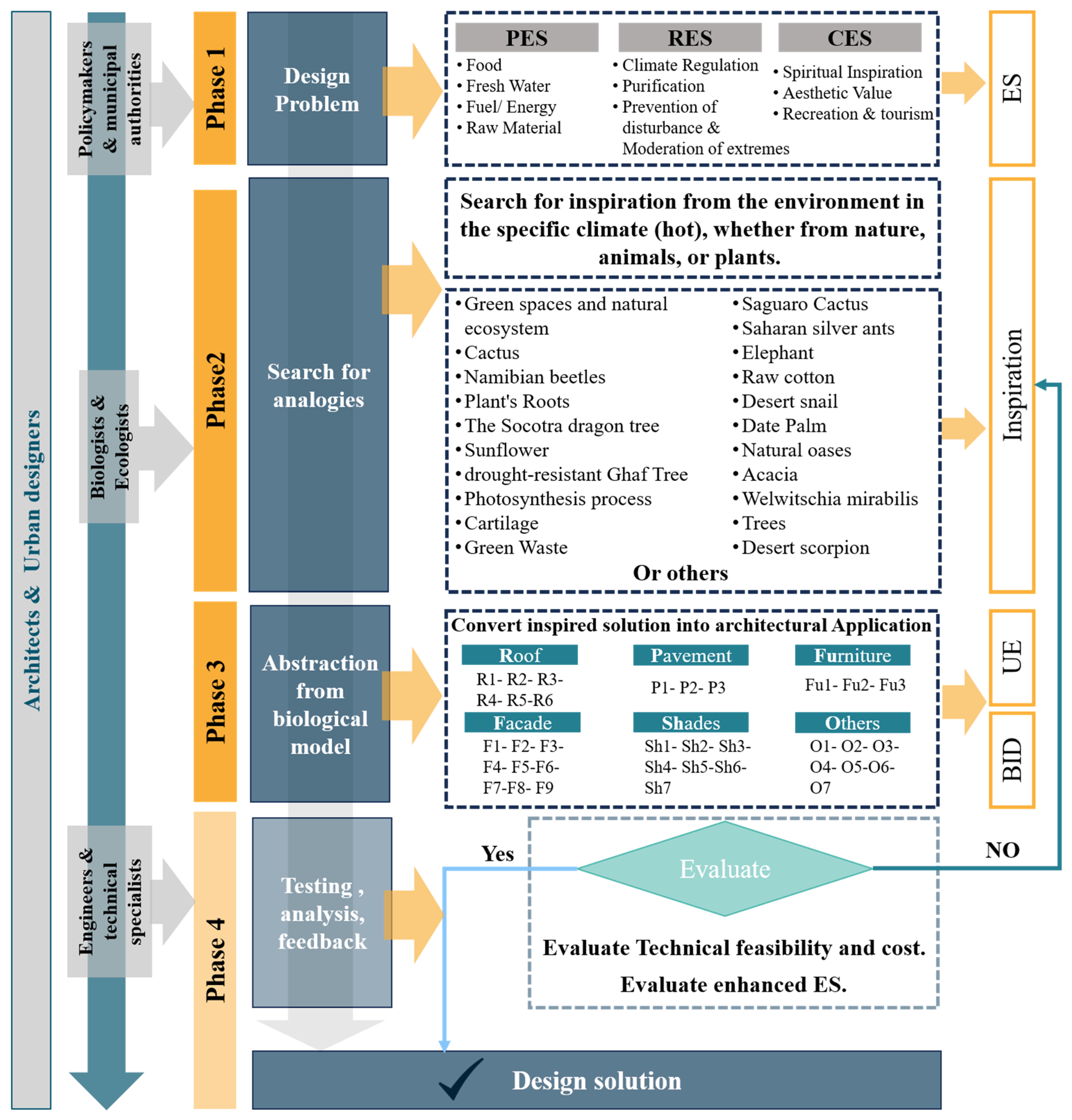 | ES | Bio-Inspiration | Urban Element | Bio-Inspired Design (BID) | Ref. | |||||||