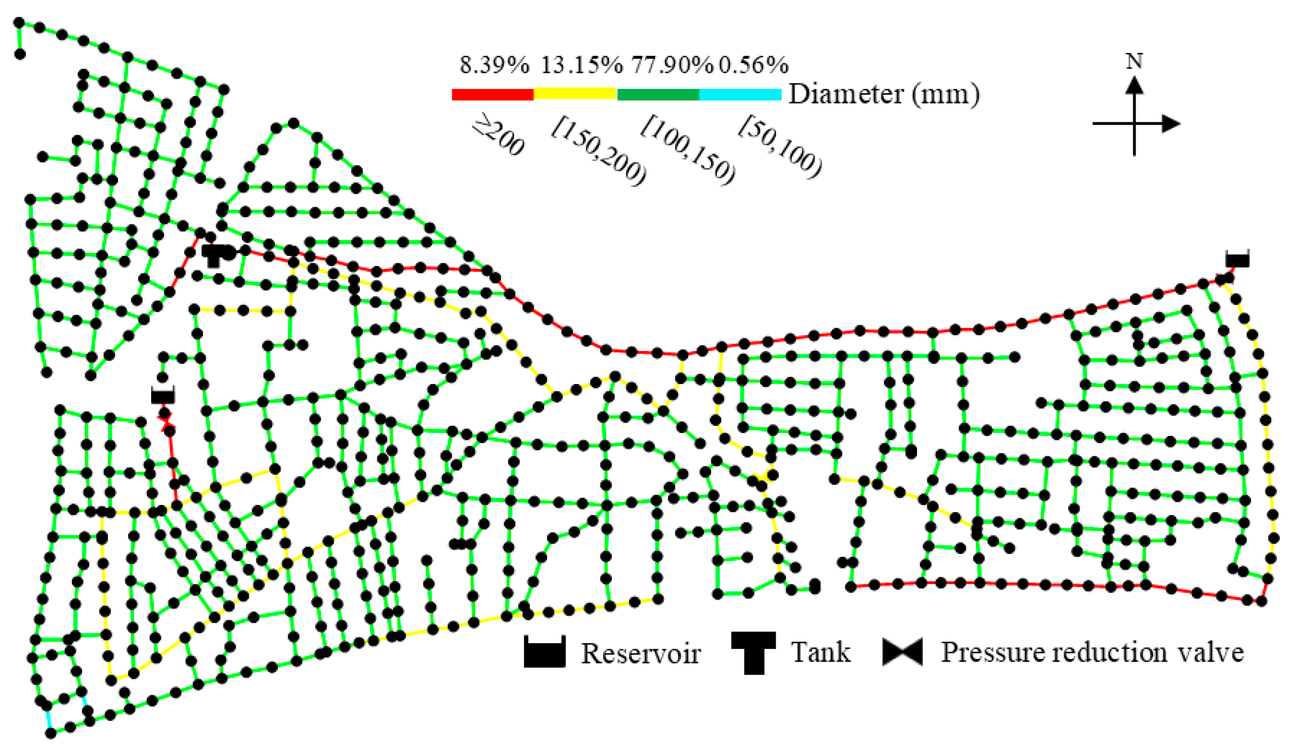 - Rossman, L.A. EPANET 2: Users’ Manual; U.S. Environmental Protection Agency (EPA): Cincinnati, OH, USA, 2000.