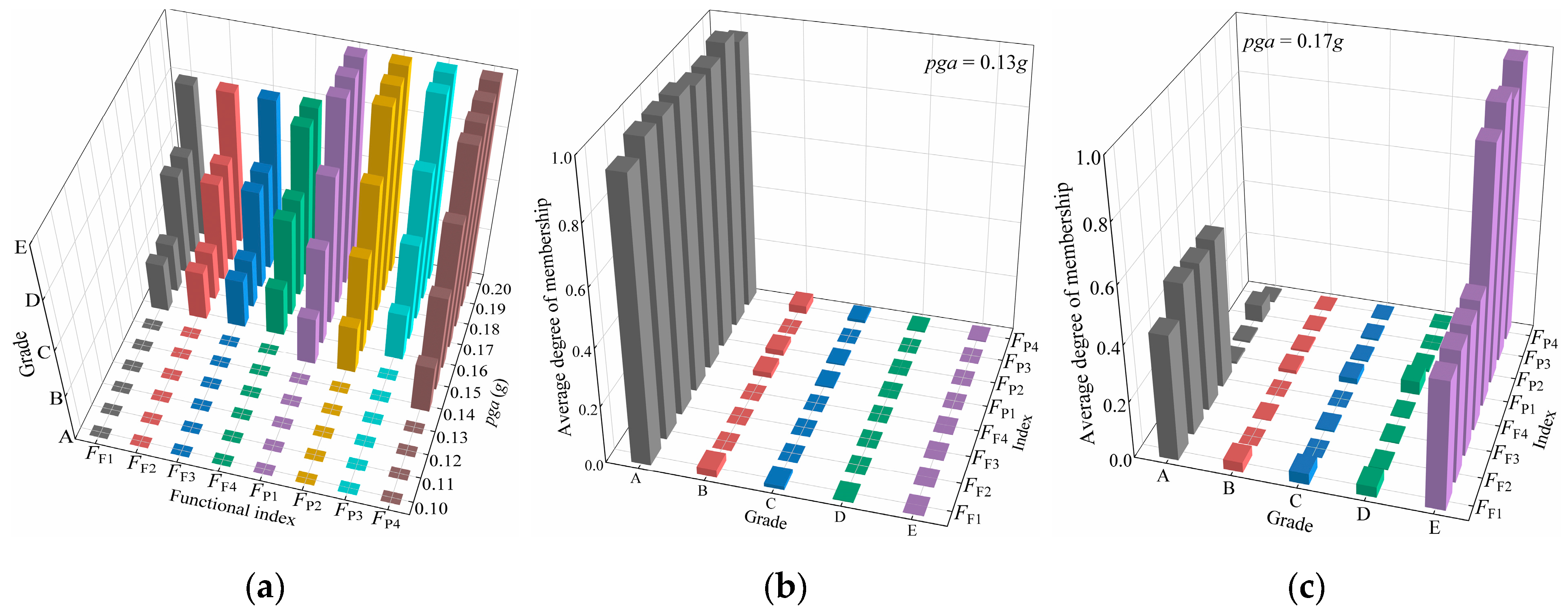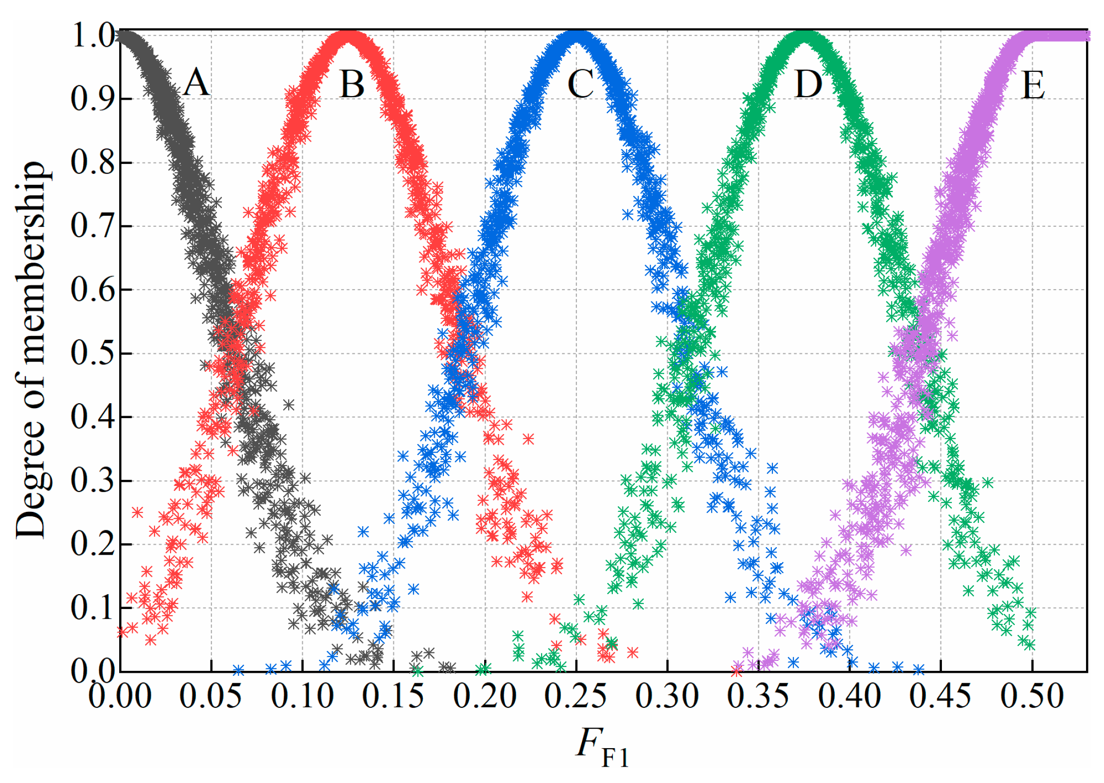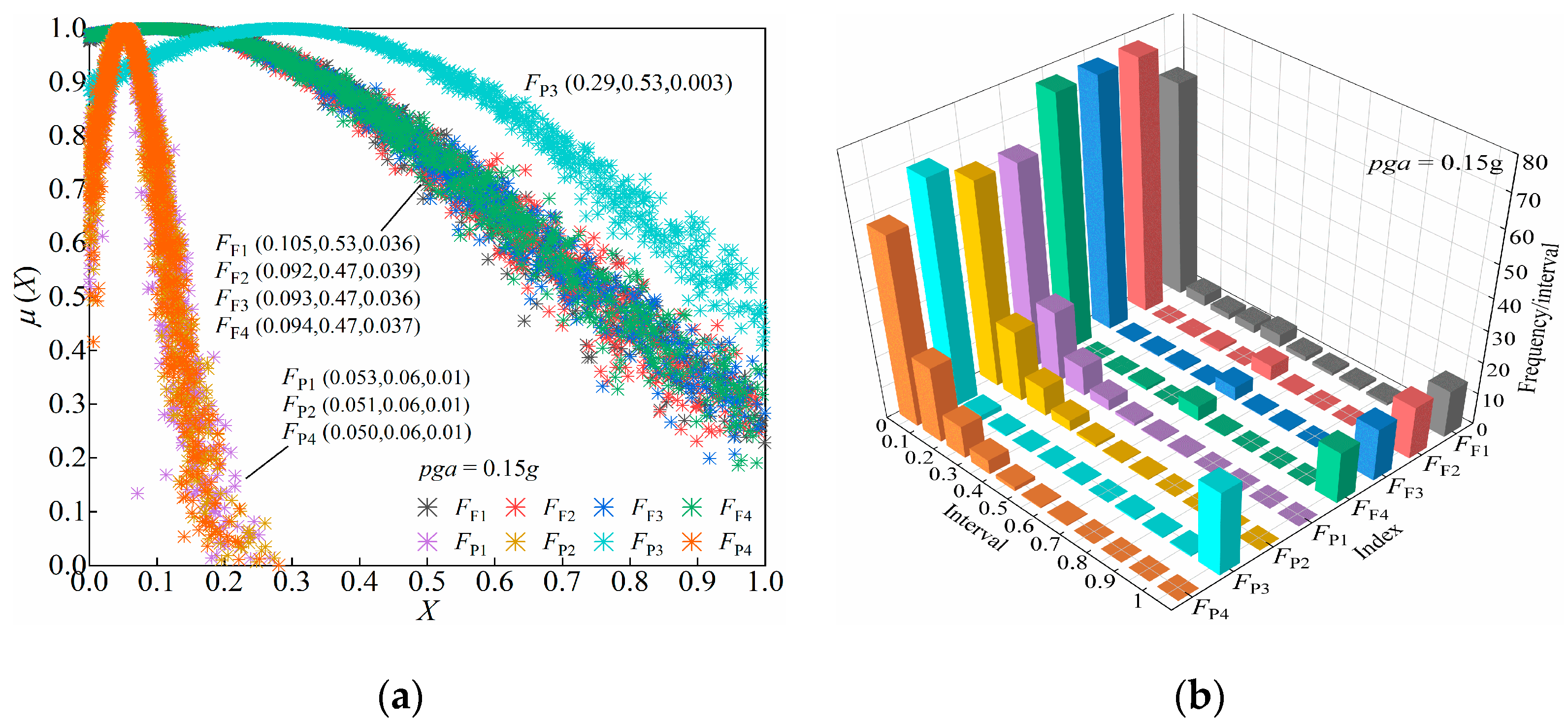 2.3. Stochastic–Fuzzy Assessment of the Firefighting Functionality