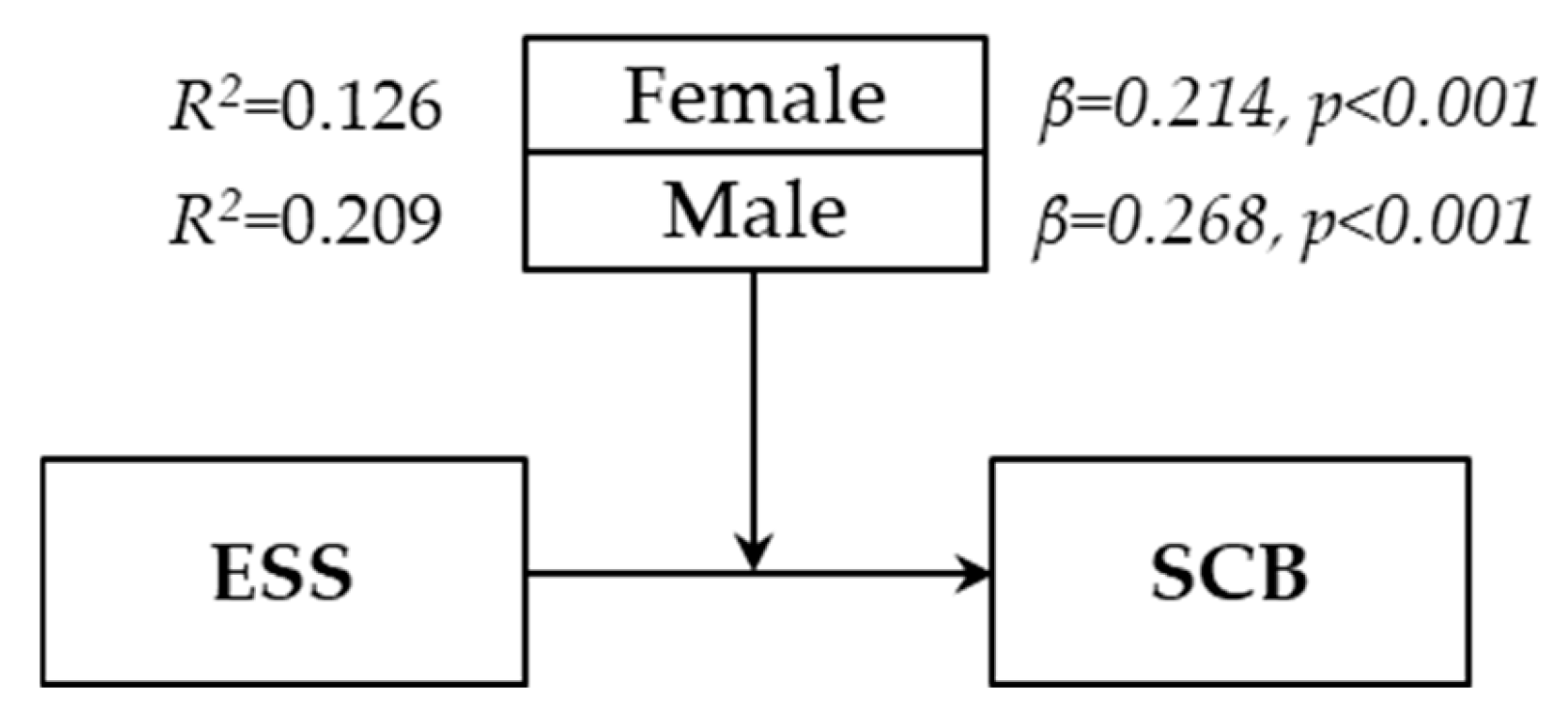 34] was taken into account; therefore, gender was included as a moderator in the analyses. Accordingly, the heterogeneity of the sample with respect to gender enhances the methodological rigor of the study.