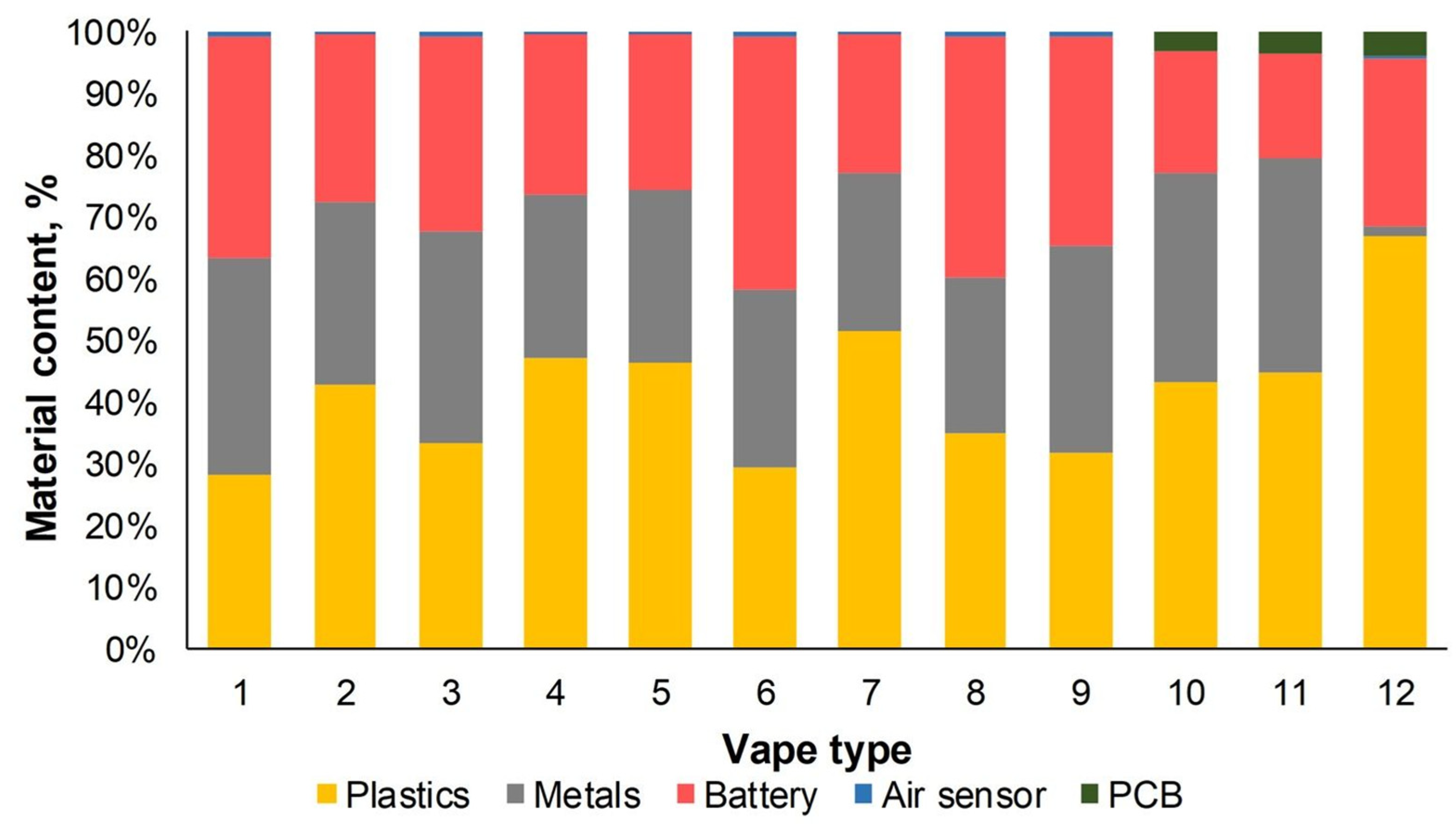 - Material Focus. Disposable Vapes Thrown Away Quadruples to 5 M per Week. Available online: https://www.materialfocus.org.uk/?press-releases=disposable-single-use-vapes-thrown-away-have-quadrupled-to-5-million-per-week (accessed on 21 September 2025).