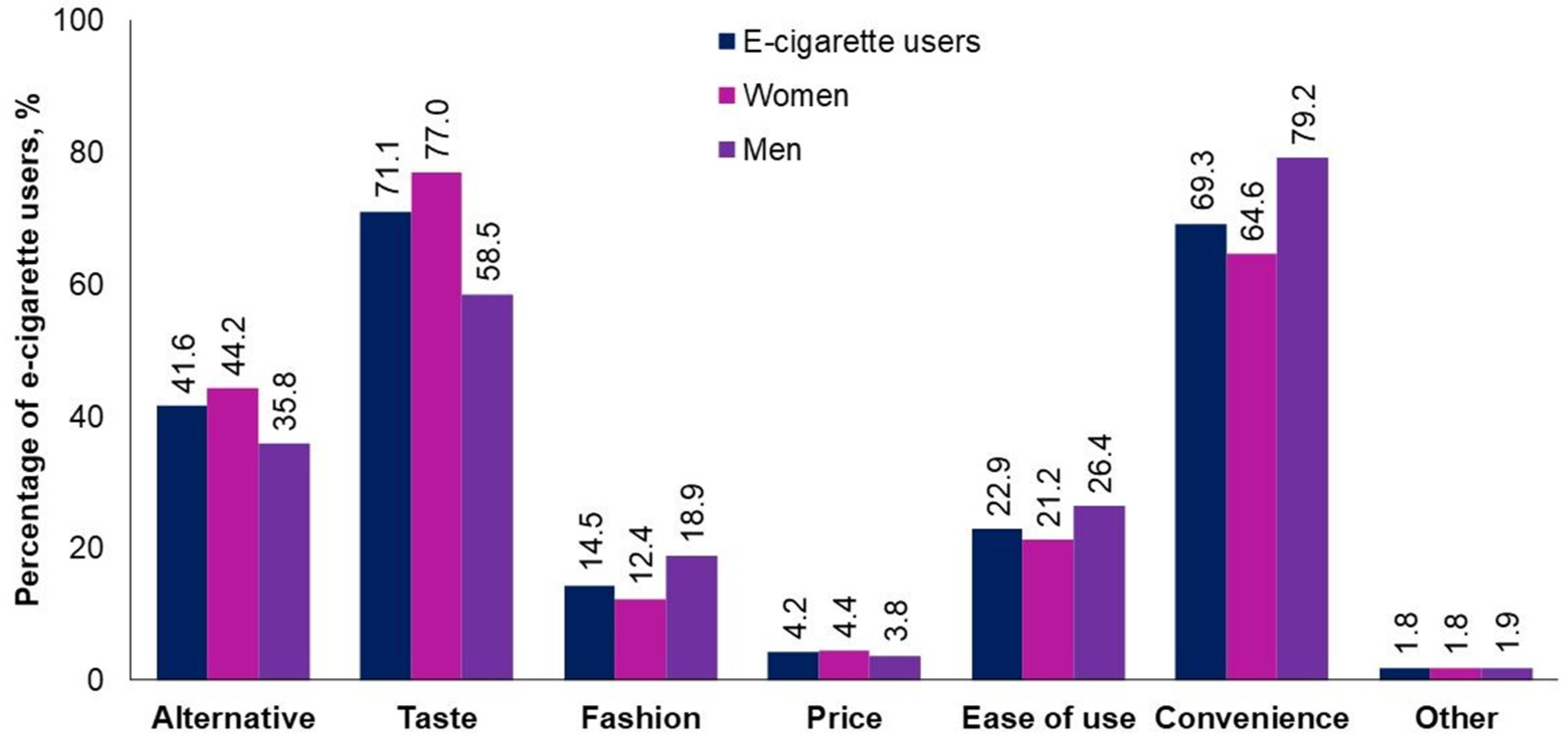 | E-cigarettes users | Share of respondents aged 18–30 who smoke disposable e-cigarettes, % | ||||