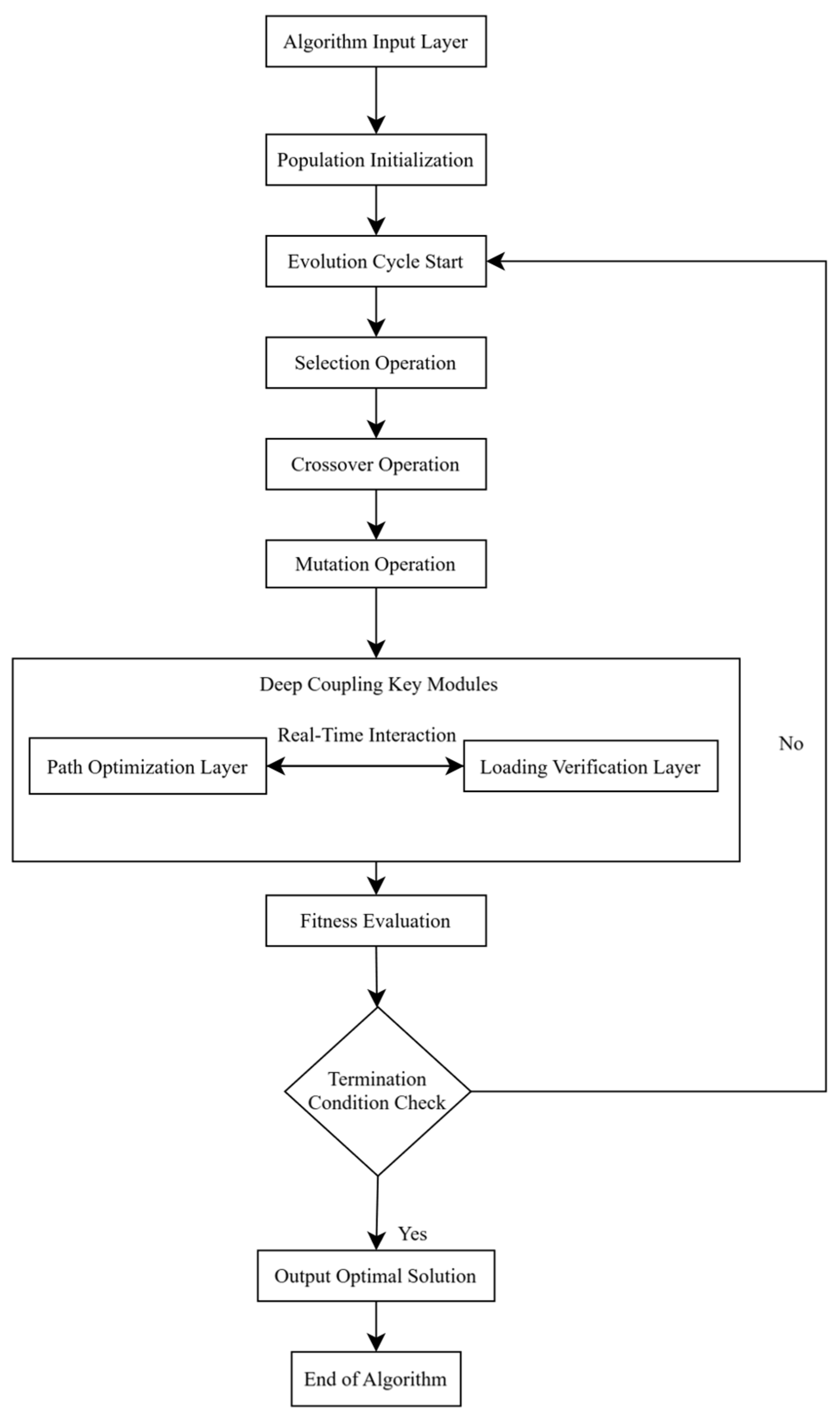 Deep Coupling Mechanism: Load feasibility acts as the core indicator for fitness evaluation. Route optimization and load verification are tightly interwoven during fitness calculation, thereby forming a closed-loop feedback mechanism.