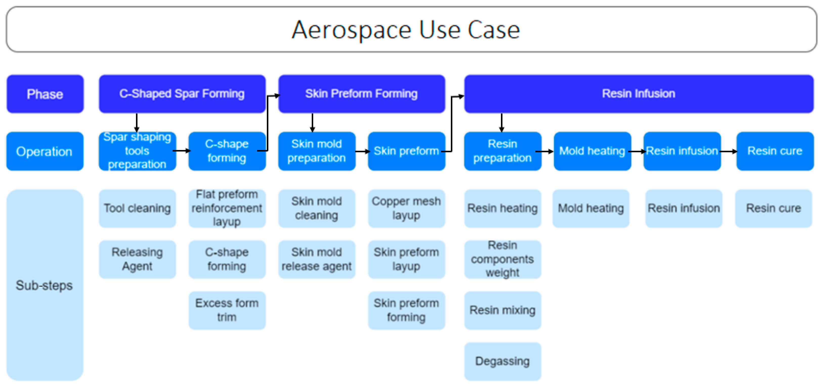 Resin infusion—This phase entails the infusion of resin into composite structures, ensuring proper bonding and structural integrity. It is a time-sensitive and material-intensive operation, critical for achieving desired mechanical properties.