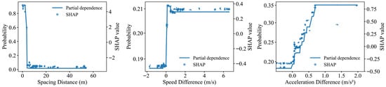 Figure 10. PDP analysis of key risk features on the straight road segment (Top 3).